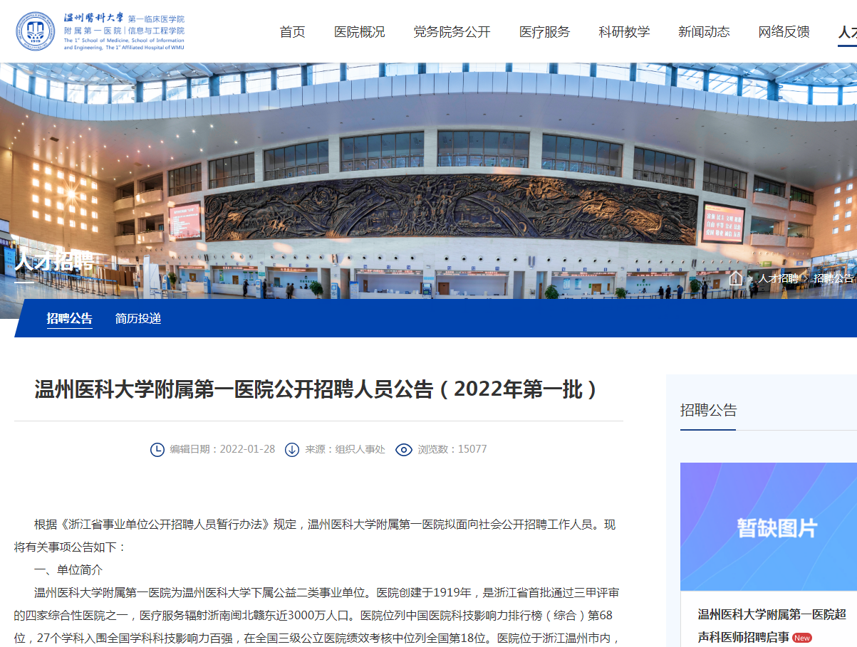温州医科大学附属第一医院积极响应贯彻“两个同等对待”的政策