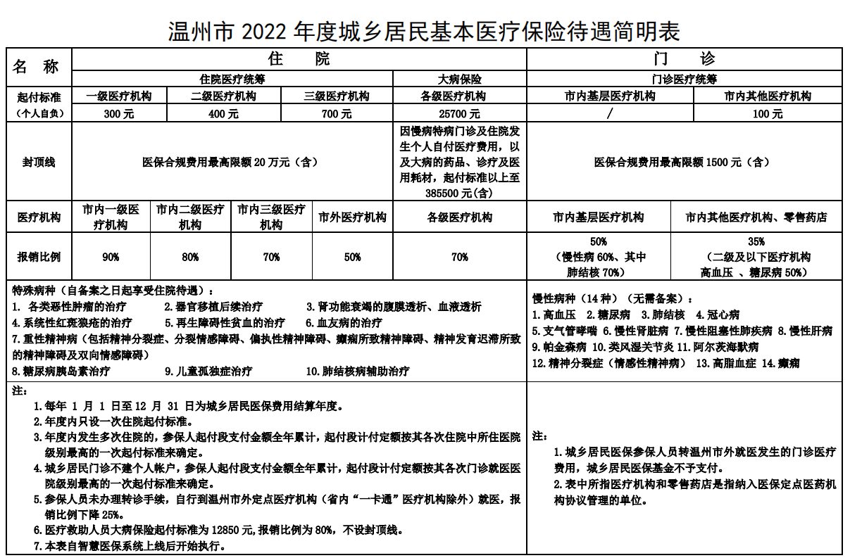 1、温州市医疗保险年度为当年1月1日至12月31日。一个医保年度内设一次住院起付标准。参保人员年度内多次住院且所住医院级别高低不同的,按其各次住院中所住医院级别最高的一次计算起付标准。(职工医保一级及其他医疗机构200元,二级及相应医疗机构300元,三级及相应医疗机构600元。)