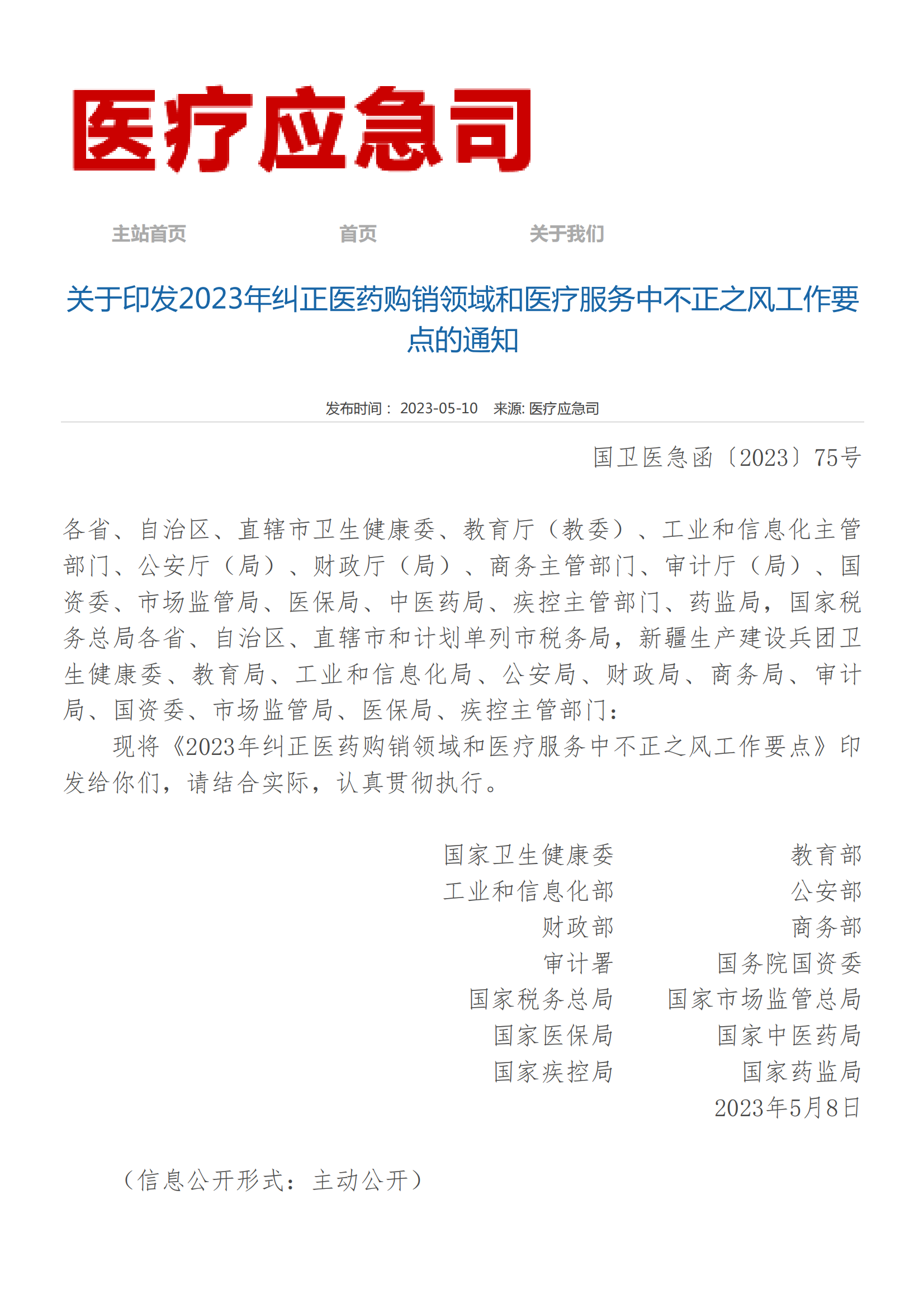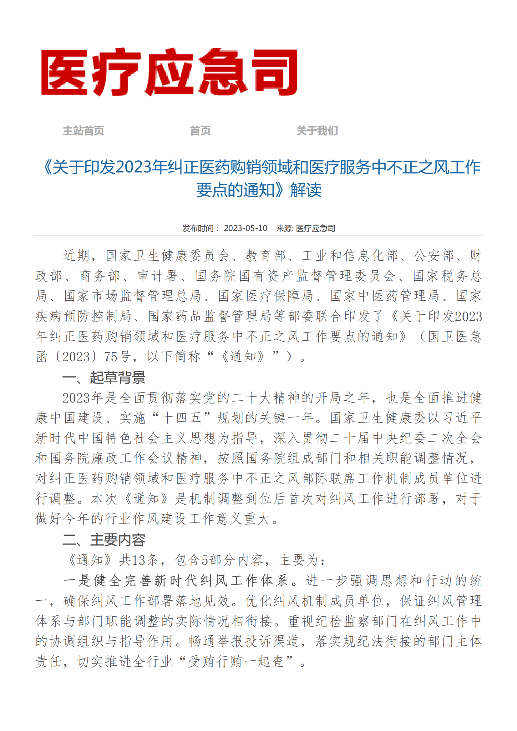 关于印发2023年纠正医药购销领域和医疗服务中不正之风工作要点的通知