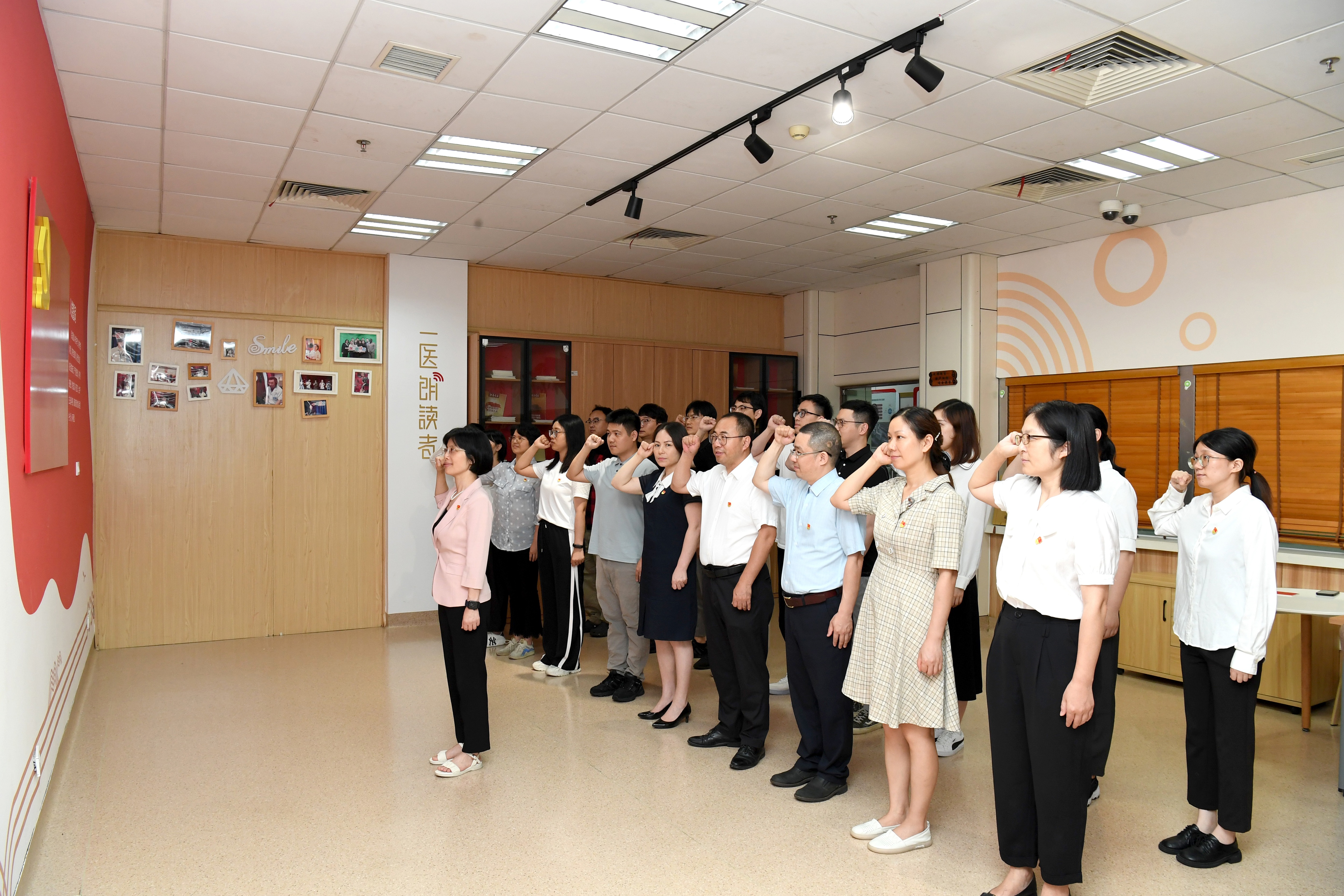 此次入党宣誓仪式不仅是一次庄重的党员成长仪式,更是一次对精神的洗礼和价值观的升华。新党员们纷纷分享了入党的心路历程与感悟。医务处副处长王鹏飞说,作为一名外科医生,同时承担部分医疗管理工作,将时刻以党员的标准严格要求自己,全力促进医疗质量和水平提升,切实提升患者满意度。神外病区护士长陈小芳说,将牢记自己是一名共产党员,以优质护理为己任带领团队协作奋进,推动“静馨”智慧病房建设,保质保量完成各项任务。急诊科住院医师许华清说,感谢党组织多年的培养和关心,将更加努力学习急诊学科知识,把学习成果转化为工作实效,全力提升急危重症救治能力。放射科工程师李双全说,将不断学习党的先进思想,持续加强医学影像检查能力,助力实现“特检一日清”,为患者提供更优质的服务体验。实验室实验师吴施佳说,将以此次宣誓仪式作为成长的新起点,以严谨、务实、科学、求新的态度从事好科研工作,在关键核心技术上攻坚克难、实现突破。
