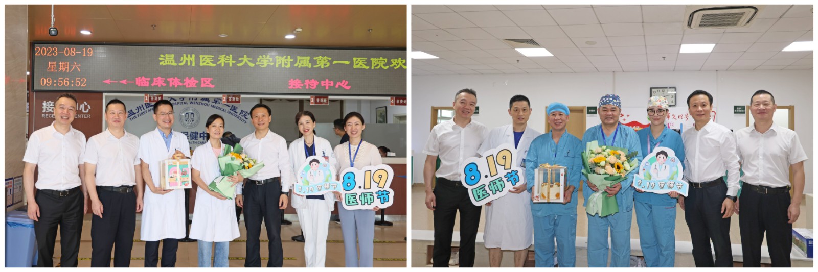 8月19日,温州医科大学副校长、我院党委书记沈贤,副院长吴高俊、张纯武,以及相关职能处室负责人一起走进临床一线,为医师们送上节日祝福。