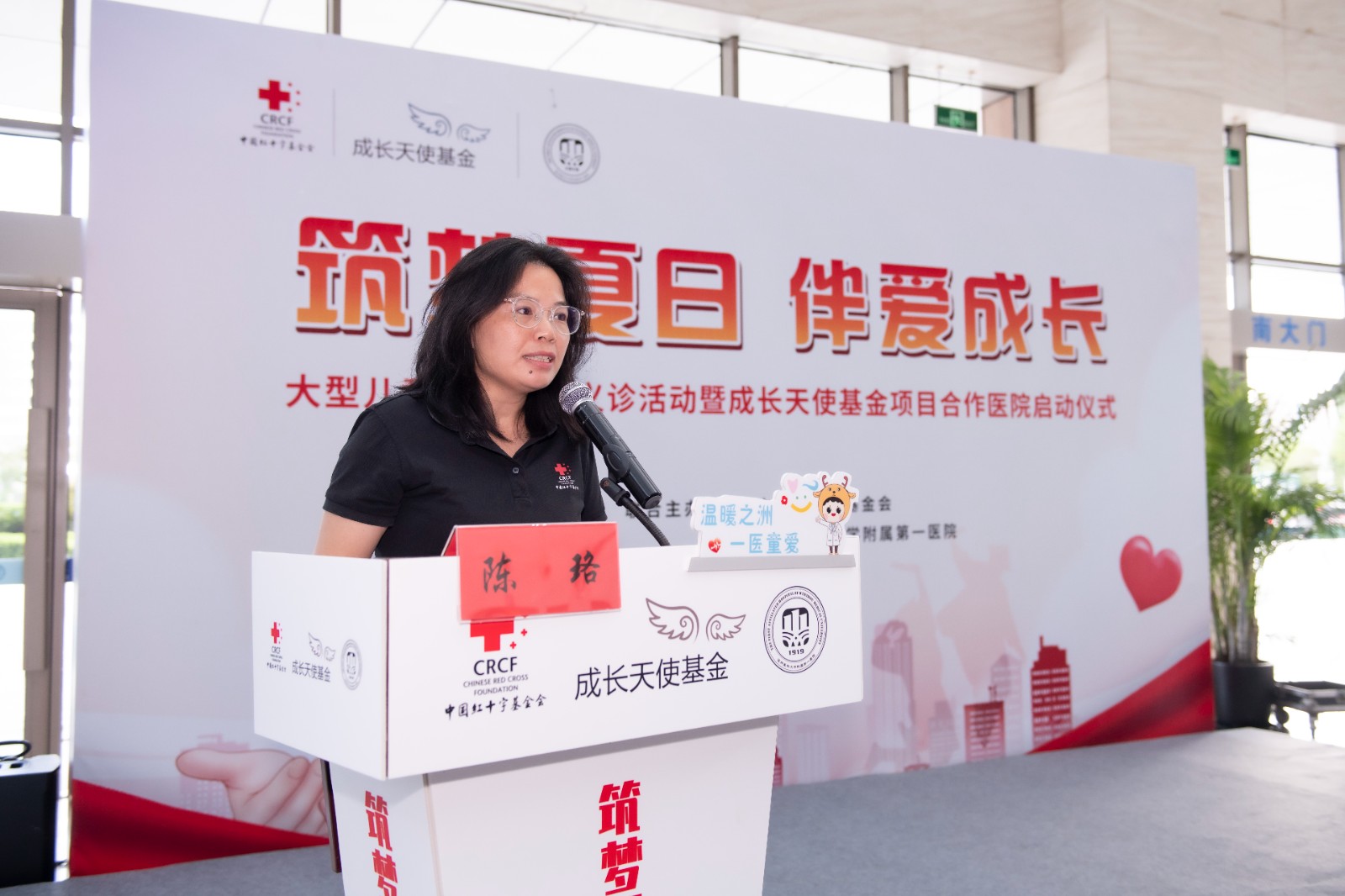陈珞代表中国红十字基金会天使成长基金为我院授牌,并在讲话中表示,天使成长基金是中国红十字基金会于2010年成立的国内关注妇女儿童健康成长的专项公益基金,一直以关爱妇女儿童健康成长、幸福生活为己任,我院专业的医疗水平、卓越的医护服务获得了中国红十字基金会成长天使基金的认可,成为中国红十字基金会成长天使基金合作医院。