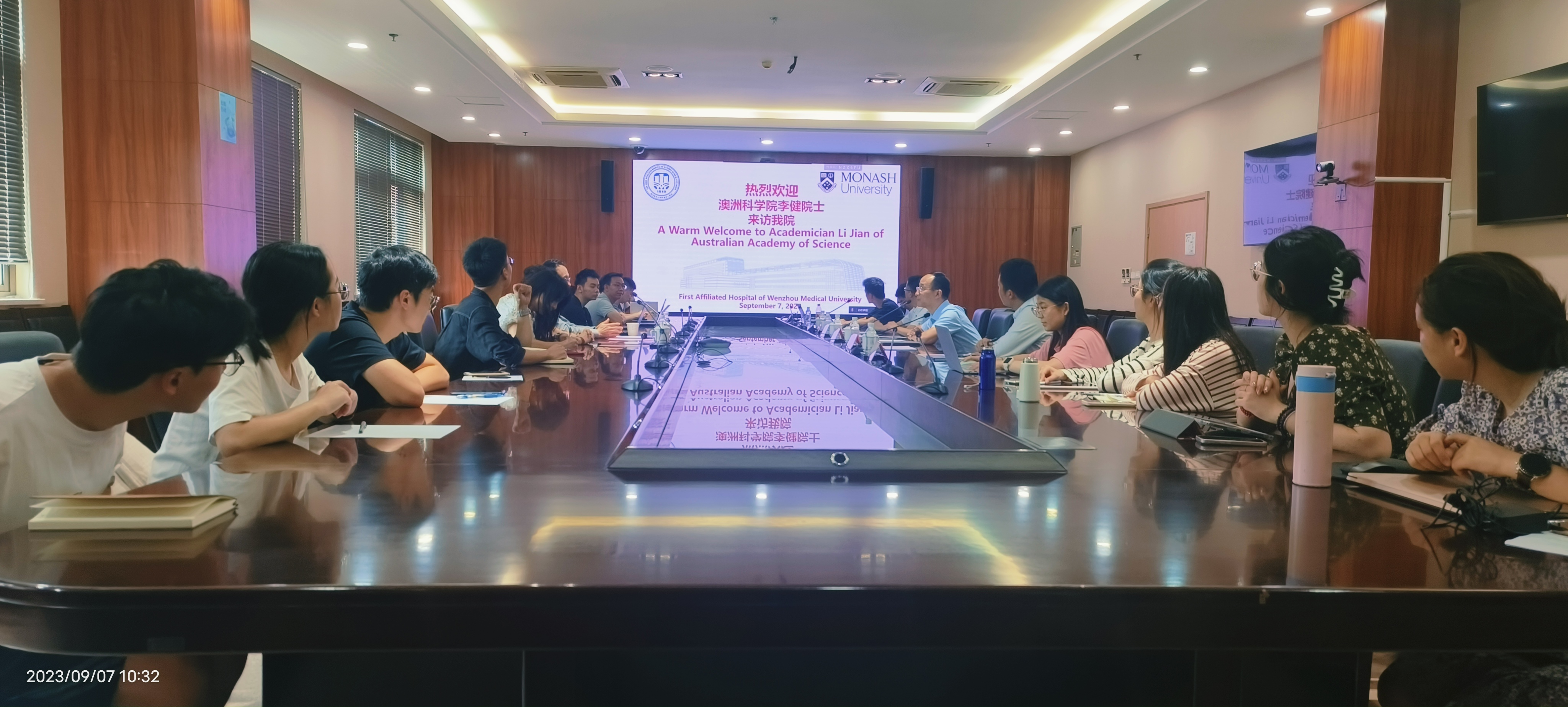 9月7日,澳洲科学院院士、蒙纳士大学生物发现研究院微生物系和药学院教授李健来院访问交流,我院副院长王美豪,(检验科)医学检验中心、药学部以及对外合作交流处负责人参与交流。