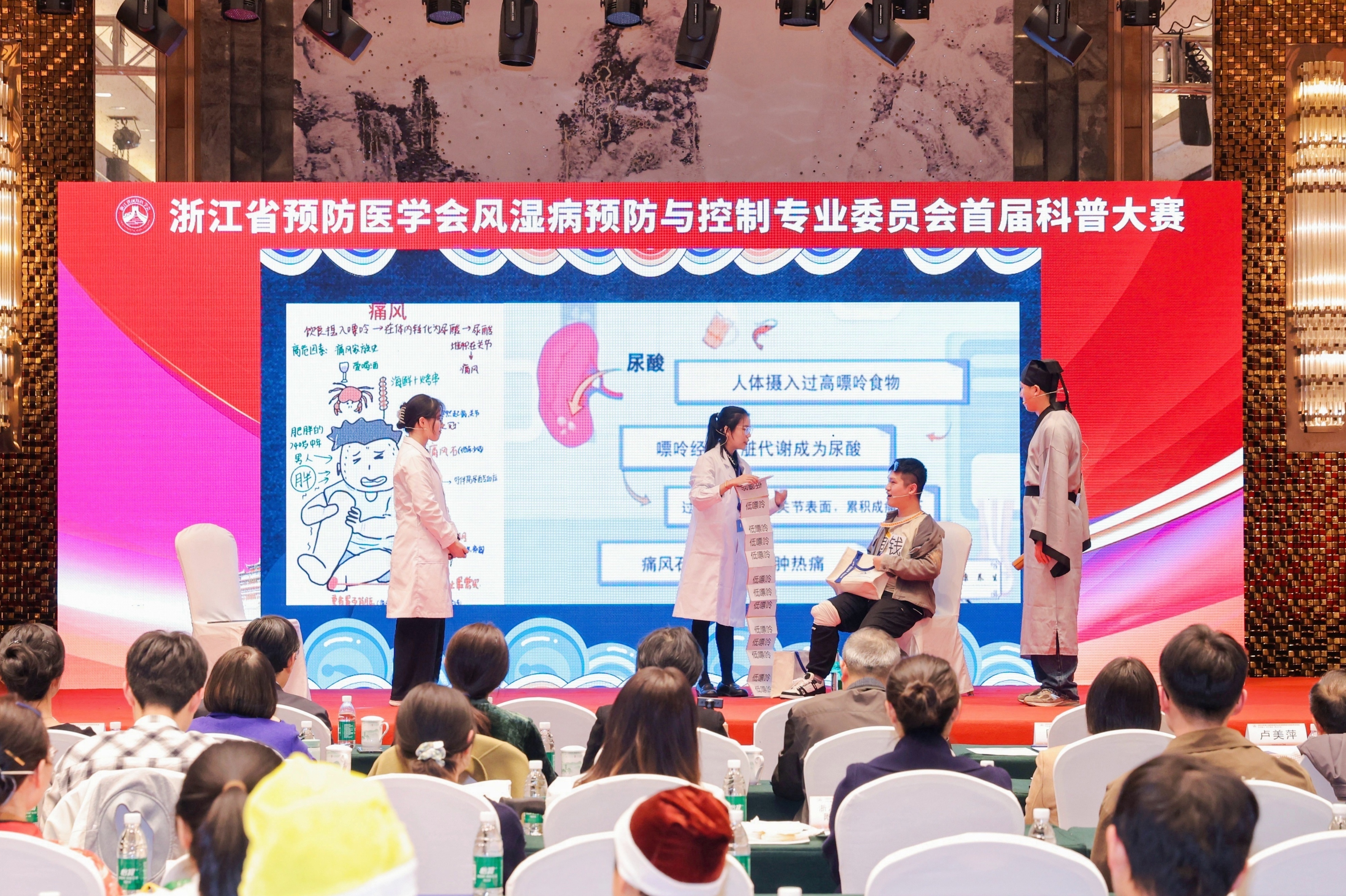 为提高风湿免疫领域的科普传播能力,加强公众对该领域的认识和理解,3月29日,浙江省预防医学会风湿病预防与控制专业委员会举办了首届科普大赛。经过激烈角逐,由我院风湿免疫科副主任医师李永吉,护师朱鸯、杨青青,规培生吕若雯、章显伟组成的团队,凭借《尿酸风云之古今探秘》科普表演,在全省各大医院选送的18个节目中脱颖而出,荣获本次比赛特等奖。