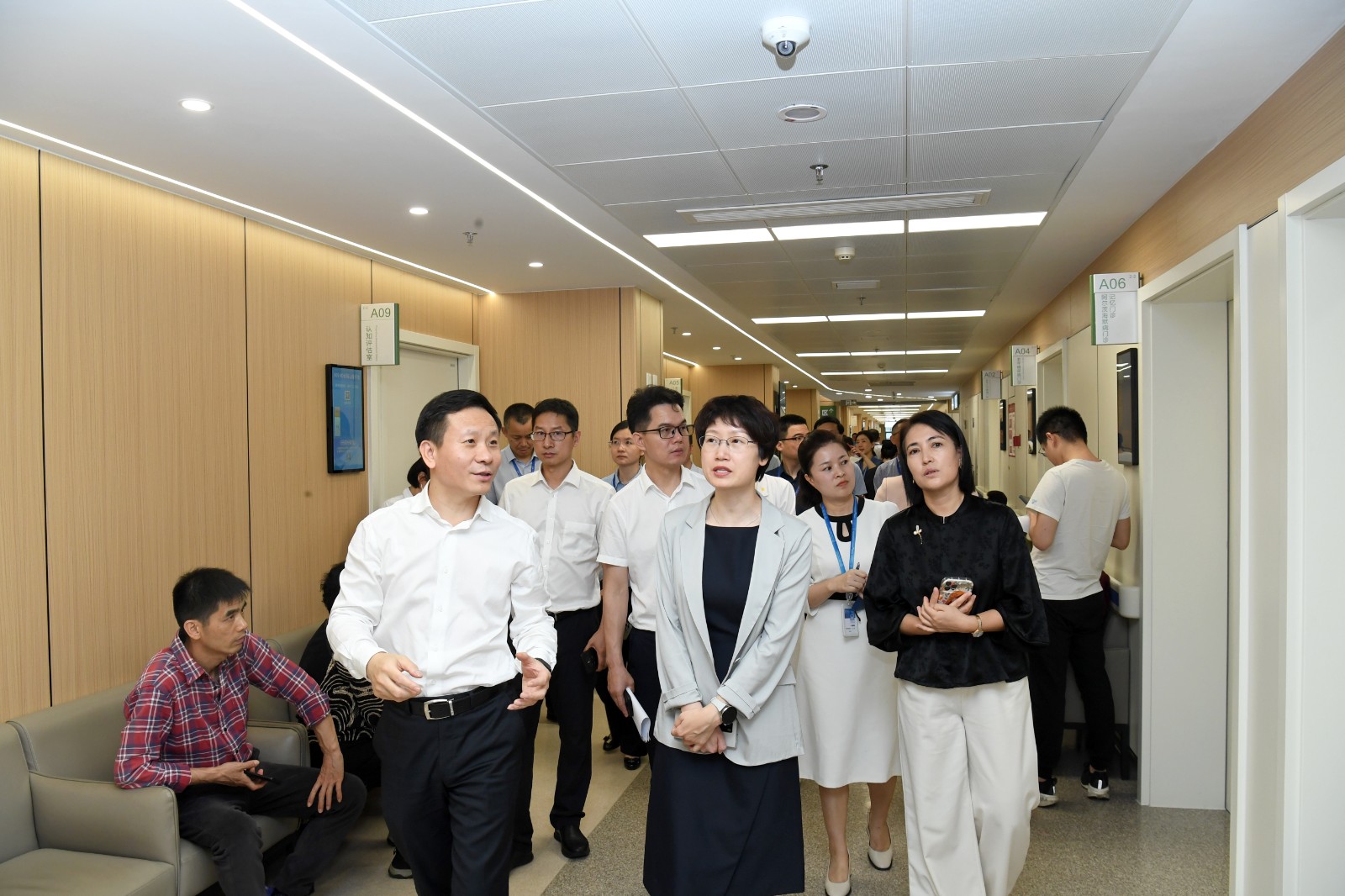林丹艳一行实地查看了公园路院区AD科教楼、门诊楼老年医学中心、住院大楼老年病房等地。