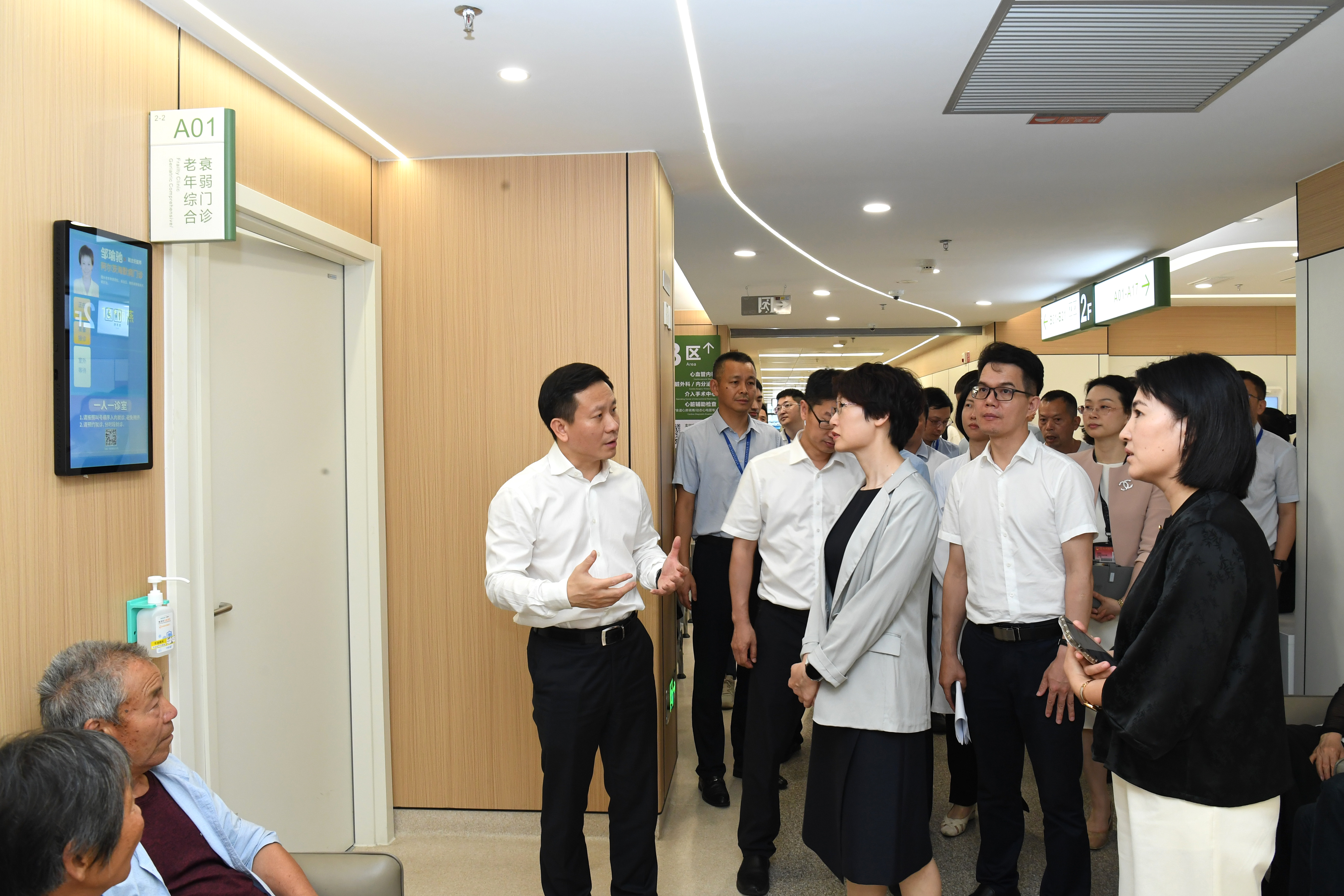沈贤详细介绍了少美校改造情况及我院门诊刷脸就医信息化流程、老年联合门诊和病区适老化改造情况等。