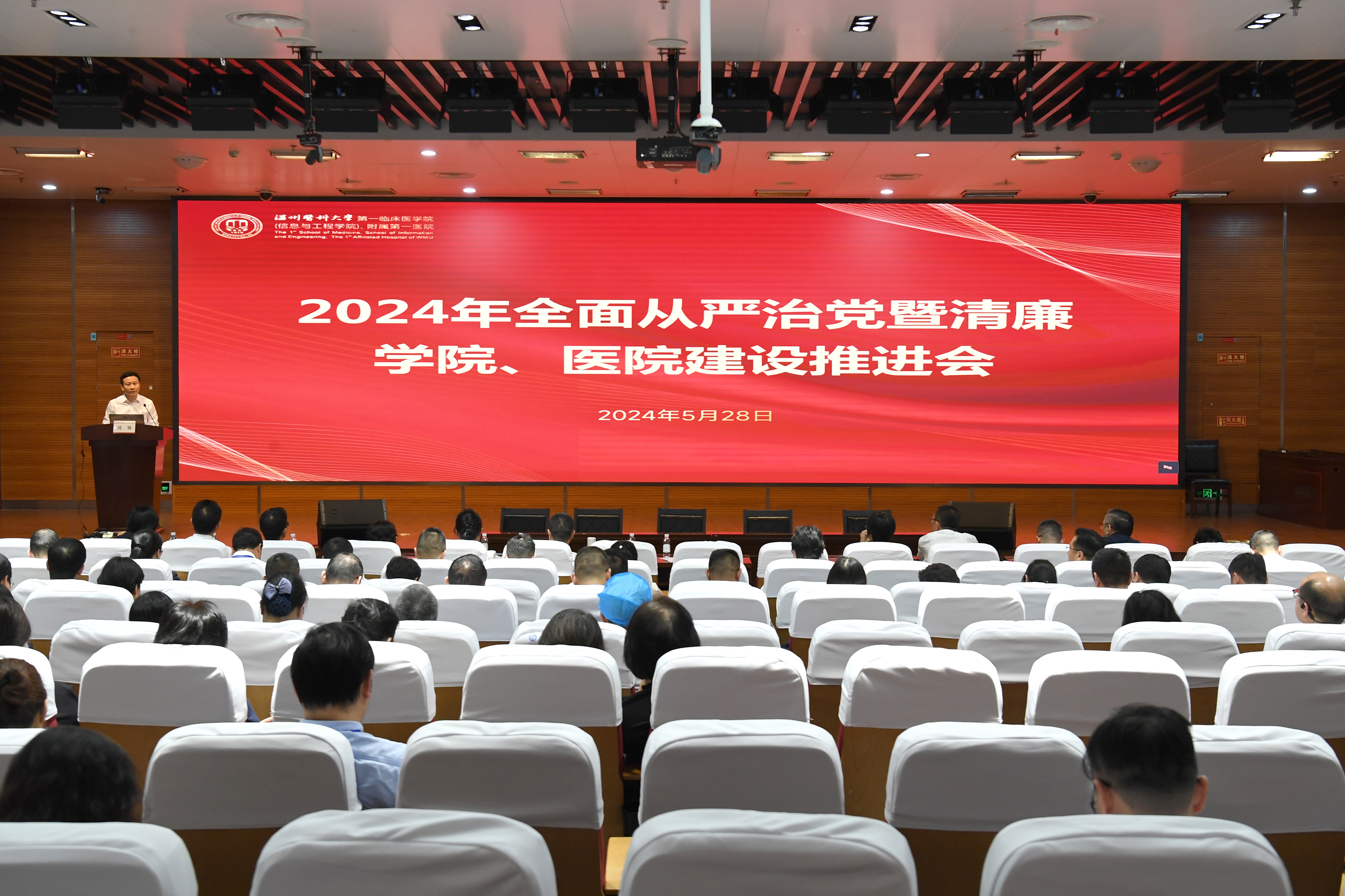 5月28日下午,我院召开2024年全面从严治党暨清廉学院、医院建设推进会。温州医科大学副校长、院党委书记沈贤讲话,院长张纯武主持会议,院纪委书记黄建永作纪检工作部署。