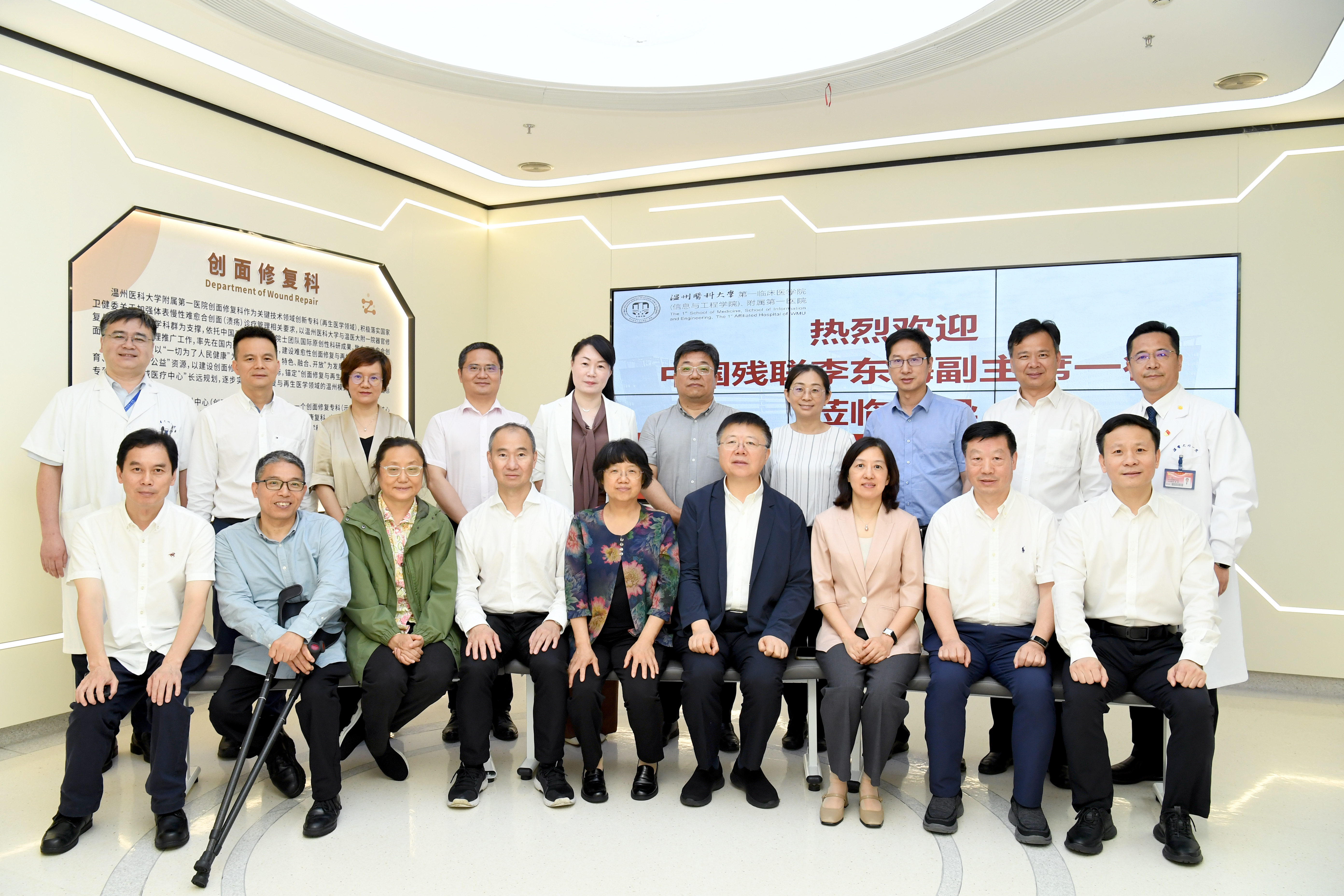6月12日下午,中国残联党组成员、副主席李东梅一行来我院调研创面修复、老年医学等学科建设情况,并到创面修复科实地查看。温州医科大学校长、中国工程院院士李校堃,浙江省残联理事长吕林,温州市副市长章月影,温州医科大学副校长、我院党委书记沈贤,温州医科大学学术副校长、瓯江实验室主任、加拿大健康科学院院士宋伟宏等陪同调研。