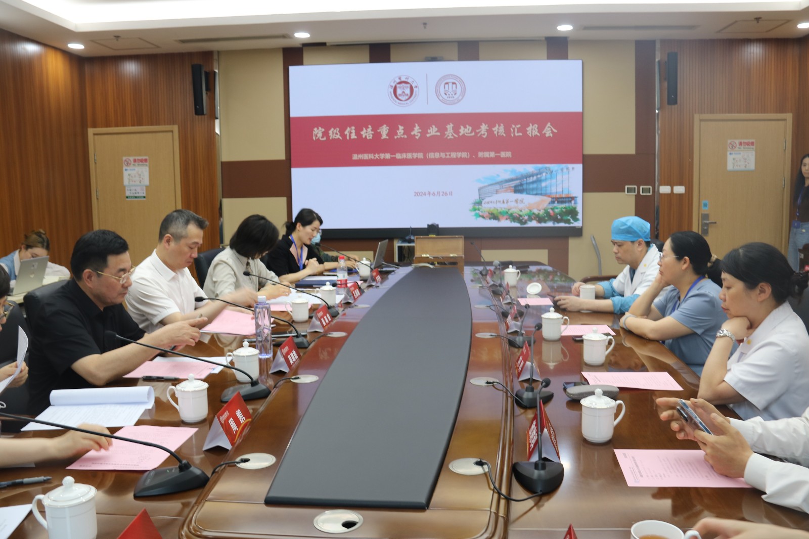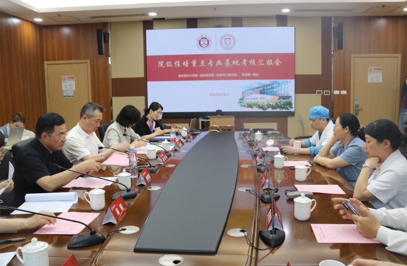 会议邀请学校和院内住培专家开展评审,第一临床医学院(信息与工程学院)执行院长、附属第一医院副院长(兼)吴高俊,温州医科大学继续教育学院毕业后教育科科长孔瑜瑜,全国毕教委员会评估专家吴建胜,我院急诊科副主任、国家级住培重点专业基地急诊科专业基地教学主任吴斌,妇科副主任、国家级住培重点专业基地妇产科专业基地教学主任周凯,以及首批、第二批院级住培重点专业基地负责人、教学主任、教学秘书参加汇报会。