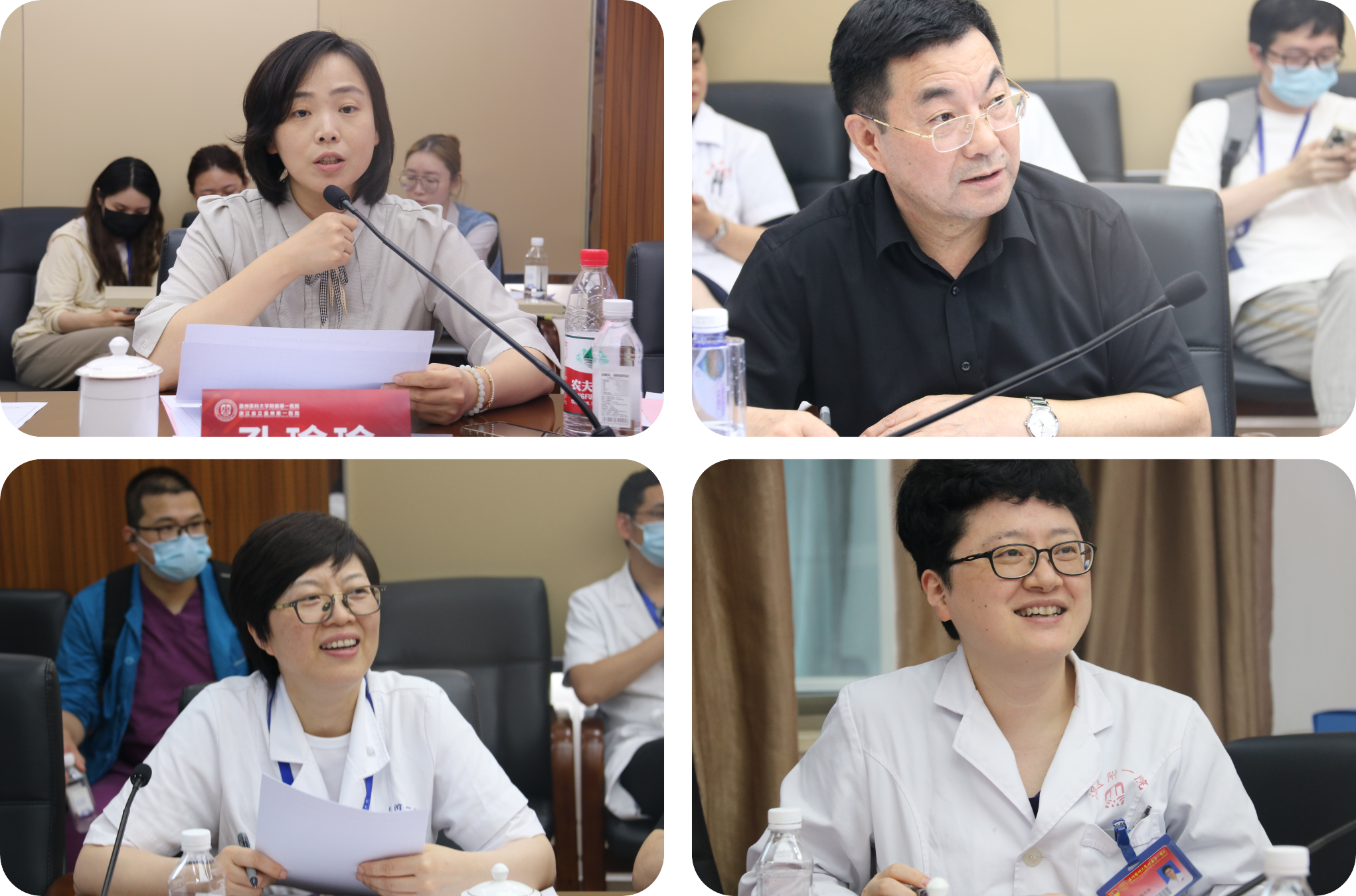 首批院级住培重点专业基地成员:外科专业基地教学主任程骏、全科专业基地负责人陈素秀、重症医学科教学主任王晓蓉、内科专业基地负责人李玉苹、放射科专业基地负责人郑祥武和麻醉科教学主任莫云长按序先后从基地建设目标、建设完成情况、创新点和考核自我评价等方面开展期末考核汇报。