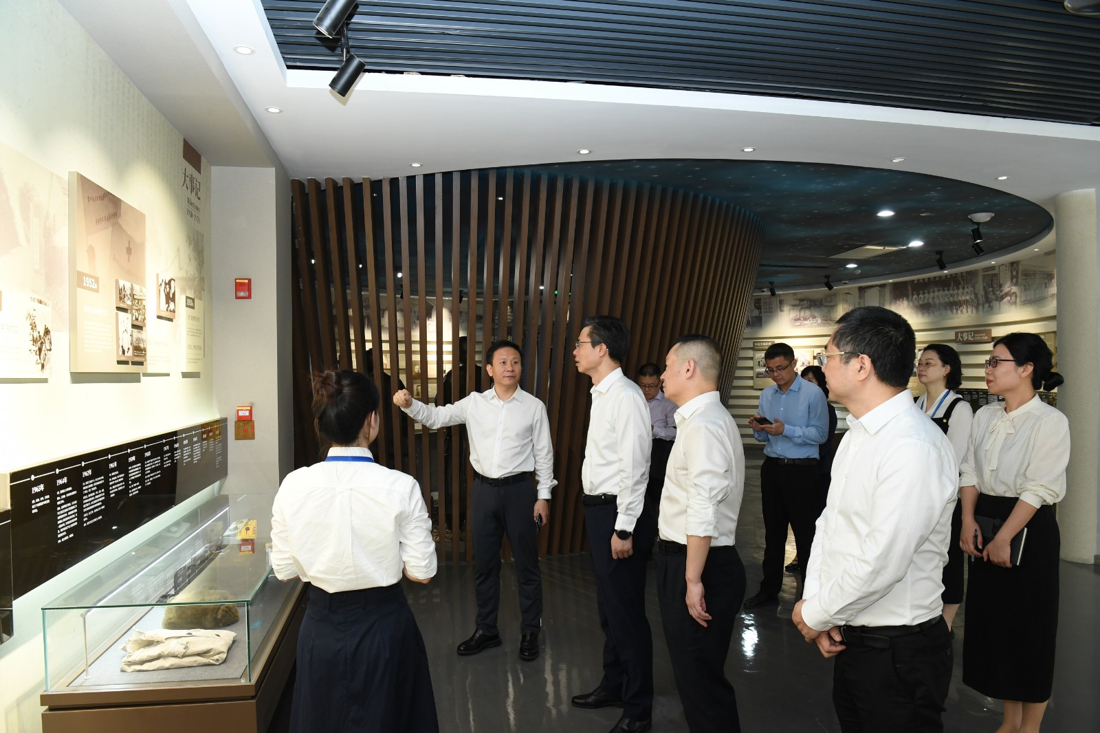 宣讲会前,金焕民来到院史馆,近距离了解医院百年发展历程以及医疗特色、学科建设、医院文化等方面的发展成果。