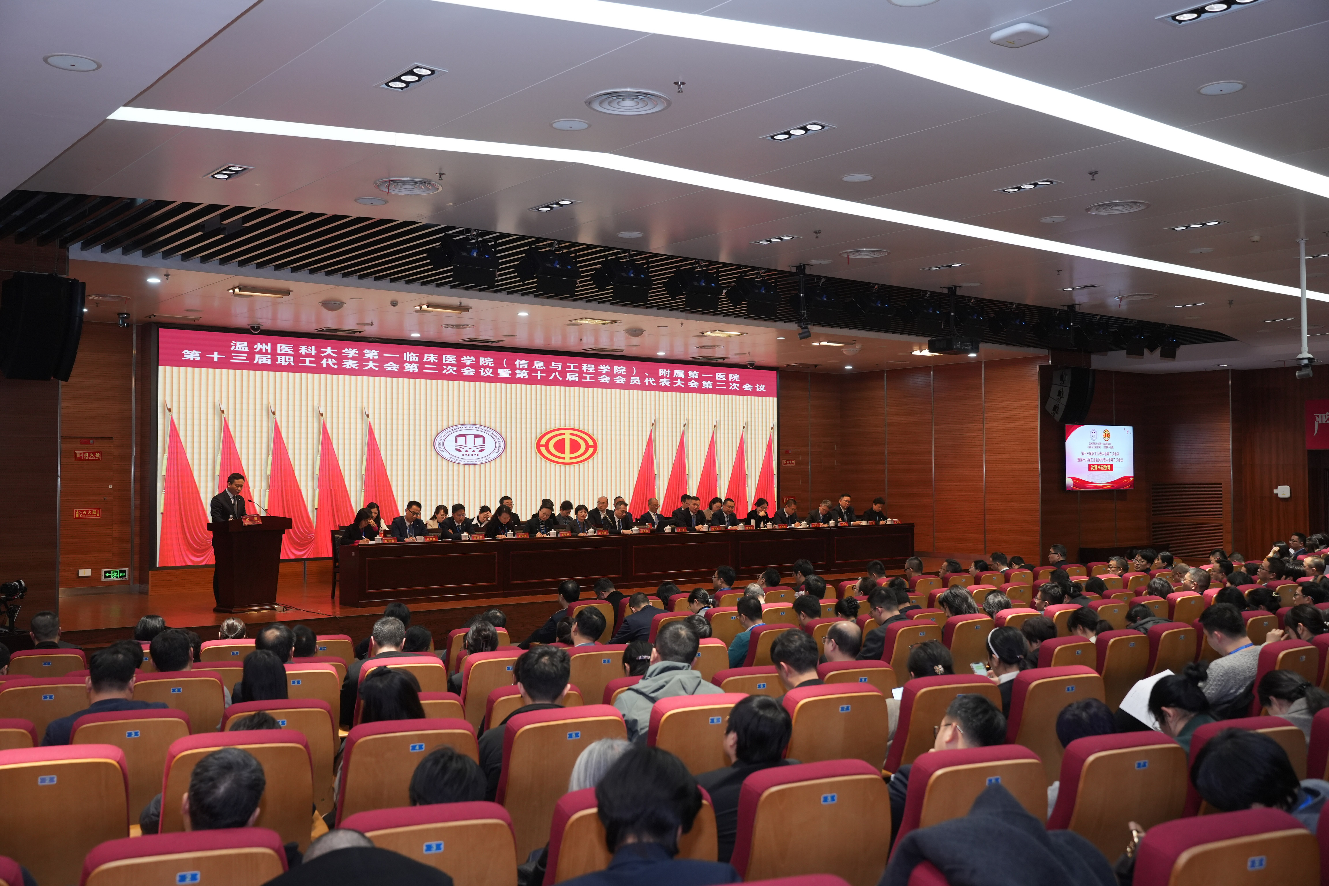大会听取了代表团讨论和审议情况,提案处理与征集情况报告,表决通过了《温州医科大学第一临床医学院(信息与工程学院)、附属第一医院第十三届二次职工代表大会暨第十八届二次工会会员代表大会决议(草案)》,宣布第十八届工会委员会委员增选结果和2025年服务职工十项实事。