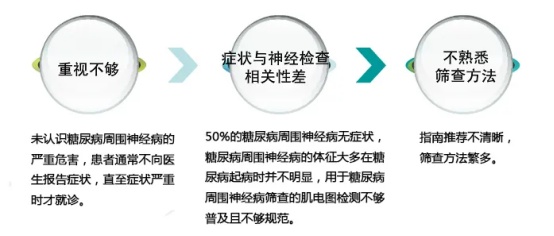 糖尿病周围神经病是糖尿病最常见的慢性并发症之一,发生率高达50%。10%的患者在糖耐量异常时,就已存在糖尿病周围神经病变;糖尿病病程超过10年,50%以上的患者会发生不同程度的糖尿病周围神经病变。但50%的糖尿病周围神经病患者可无症状。吸烟、年龄40岁以上及血糖控制不好的糖尿病患者更易发生糖尿病周围神经病变。