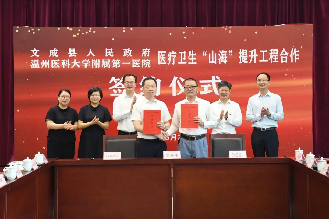 为贯彻落实浙江省医疗卫生“山海”提升工程相关要求,帮助基层提升医疗服务能力,方便基层群众就医,5月27日,温州医科大学附属第一医院与文成县人民政府签订“山海”提升工程合作协议,整合医院优质医疗资源全力奔赴“山与海”。