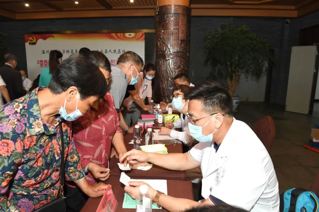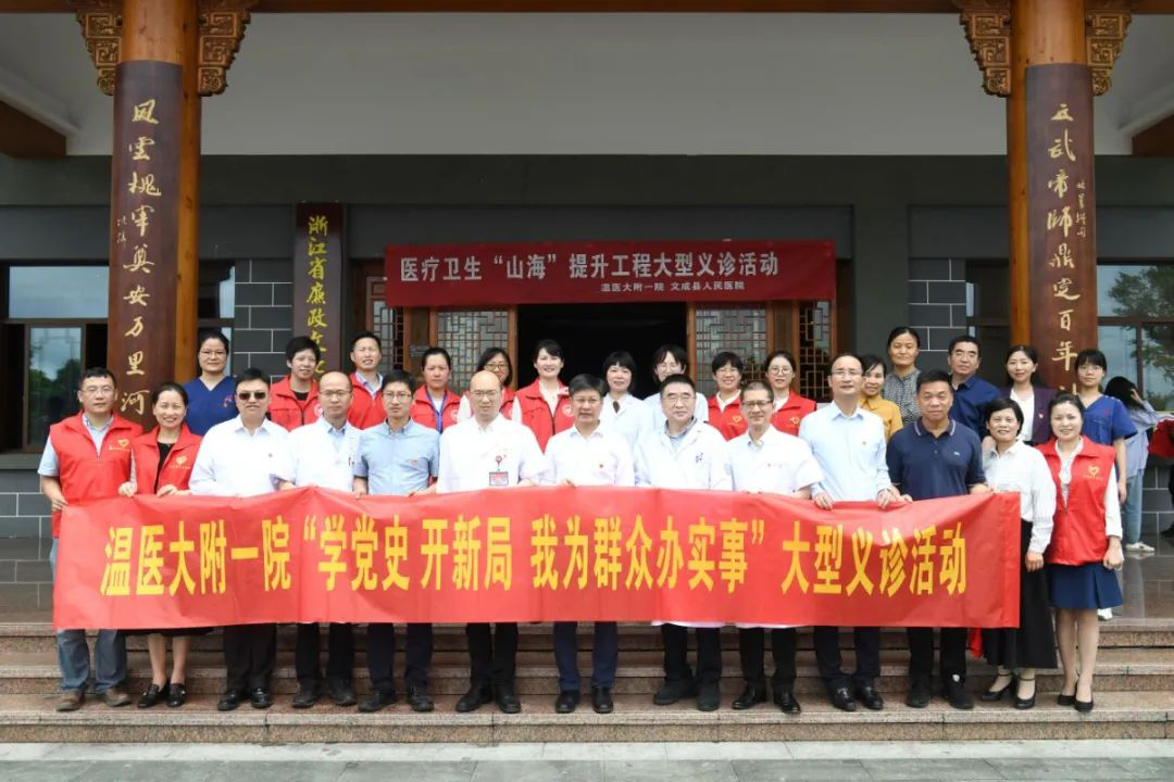 在上午签约仪式举行的同时,为献礼党的百年华诞,践行行医为民初心,温医大附一院和文成分院联合开展“学党史 开新局 我为群众办实事”大型义诊活动。温医大附一院感染内科潘发愤、眼科俞振飞、骨科滕红林、心血管内科周浩、神经外科苏志鹏、妇科朱雪洁、药剂科占阮娟、李芙蓉,护士王玉琳等与文成分院医护专家组成团队,把党史学习教育融入到为民办实事之中,共为300余人次开展义诊服务,真正做到让群众在家门口就能享受到省级医院的优质医疗服务。