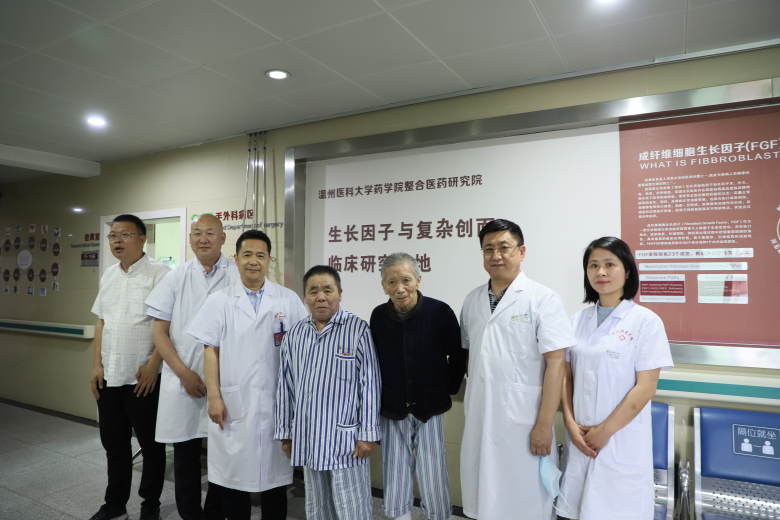 在温治疗期间,陈阿公和吴阿得到精心医治。温州医科大学附属第一医院手外科主任王健教授、曙光医院副院长陈善亮联手带领由9名医务人员组成的医疗团队上阵,为陈阿公做创面修复植皮手术。由于他右小腿溃烂面有4cm×8cm大,且属顽固性溃烂,手术具有一定的难度。医生首先为陈阿公进行创口清理去除腐肉等。接着,医生用电动取皮刀,在陈阿公右大腿上,取下一块大小与创面差不多的皮肤,将其遮盖在右小腿创面上,然后用线缝合创口。经过一个多小时,创面修复植皮手术成功。陈阿公接受了左脚溃烂处清创手术,目前创口恢复情况良好。
