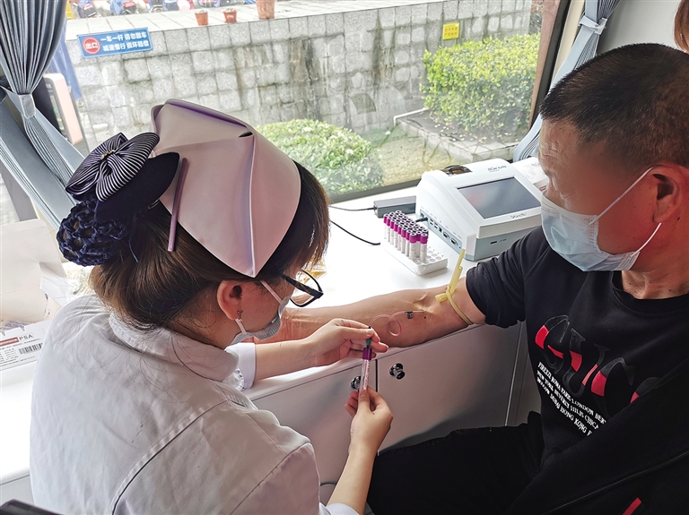 在前列腺癌早期筛查车内,来自南白象街道的王先生第一个接受抽血筛查,听说半小时后即可知道检查结果,他表示以后至少每年都要去医院做一次前列腺癌筛查。