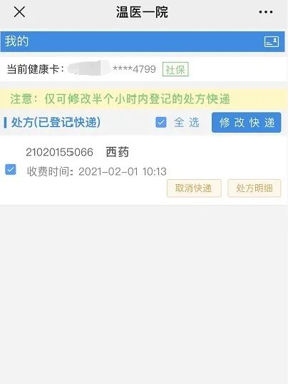 1.「云医院」服务群体为复诊慢性患者。2. 目前医保卡只支持温州地区(异地社保卡不支持)、自费卡不限区域。3. 支持全国各地派送,但疫情高风险地区,派送时间可能有所延长,敬请谅解。4. 为保证药品的运输安全,不是所有的药品都可以通过快递配送(如注射剂、冷藏药品及特殊管理药品等),请见谅。