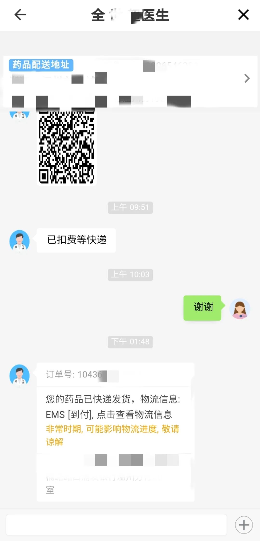 “网上问诊、配药、快递服务”流程