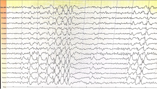 而癫痫患者的脑电图可能会有很多的惊涛骇浪,比如小陈的脑电图,又比如下面这种脑电图: