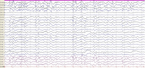 首先,最重要的检查就是脑电图。癫痫发作从根本上来说是脑电过度放电引起的,因此脑电图如能抓到过度放电的表现,则是诊断癫痫的重要依据。正常人的脑电可能是这样的,波澜不惊: