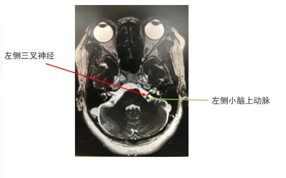 温州医科大学附属第一医院神经外科涂明副主任医师接诊后,耐心细致地分析她的病情、综合研判,初诊考虑三叉神经痛,进一步头颅MRI三叉神经血管成像发现左侧小脑上动脉与三叉神经“亲密接触”,很快,罪魁祸首找到了。