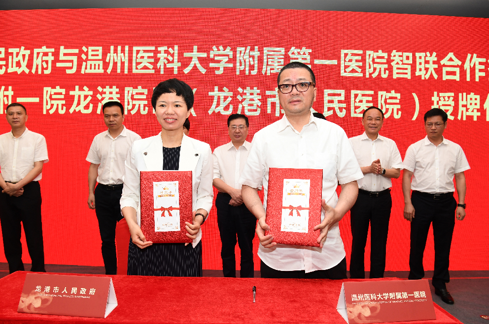 昨天上午,温医大附一院与龙港市人民政府智联合作签约暨温医大附一院龙港院区(龙港市人民医院)授牌仪式举行。