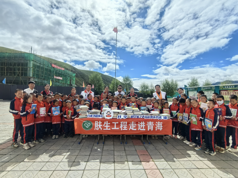 此外,“肤生工程”还在学校搭建“绿野书香阁”图书角,将270余本书籍赠送给学校,希望同学们可以好读书、读好书,从书籍中汲取力量、筑梦未来。