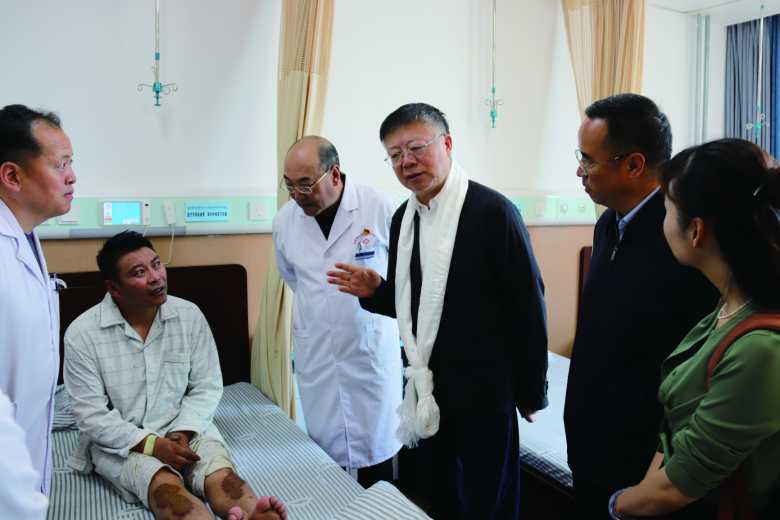 活动期间,李校堃院士及团队还深入医院的骨科、烧伤科现场,查看患者、交流指导,制订创面治疗管理的最优方案。李校堃院士表示,要用院士团队的科技成果及温医大的优势医疗资源,为西宁的老百姓做点实实在在的事情,要进一步完善医疗帮扶联动工作机制,推进西宁市与温医大的情感交流与协同合作,为推动西宁的医疗卫生和教育事业发展作出温医大的贡献。