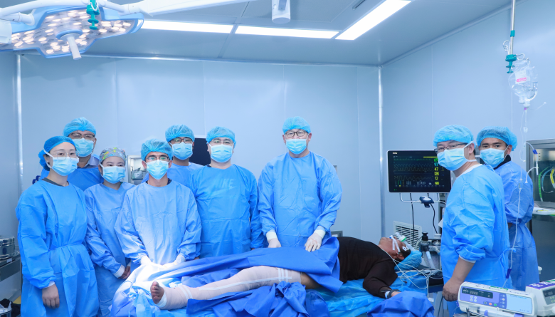 60岁的晋堆左脚患有严重静脉曲张,有软组织感染、静脉血栓、皮肤溃烂等症状。当天,陶克、陈善亮、耿武军等三位专家联手为晋堆实施手术。由于晋堆的术前血压高达192/120毫米汞柱,为确保手术顺利进行且保障患者安全,耿武军全程指导该院麻醉师益西次旺对患者实施全麻,通过术前药物控制降压处理来达到最佳效果。