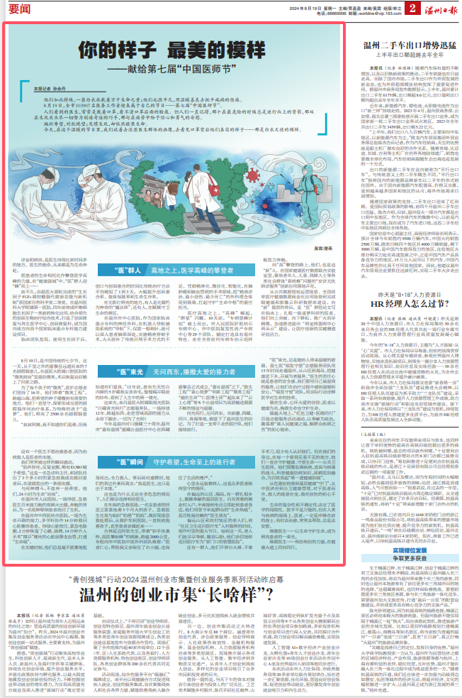 【温州日报】你的样子 最美的模样——献给第七个“中国医师节”