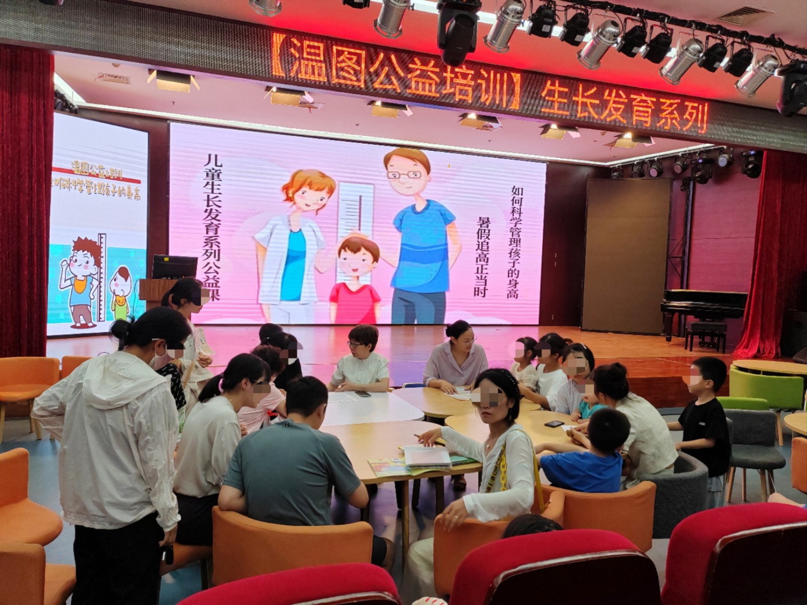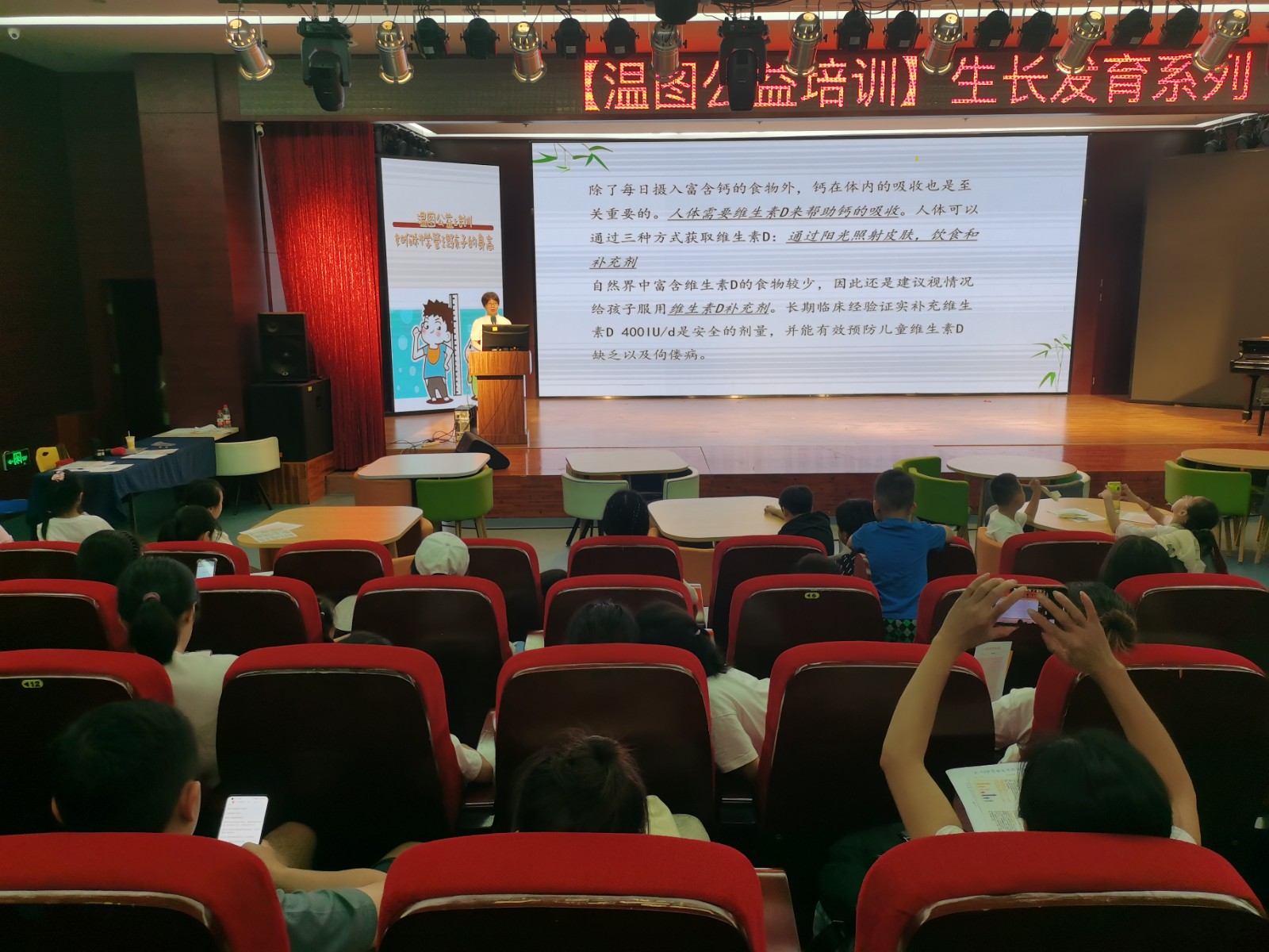此次活动通过现场科普讲座结合线上直播的形式开展,党支部书记池美珠为家长们带来了科普讲座《暑期追高正当时——如何科学管理孩子的身高》,详细介绍了儿童饮食、睡眠及运动对促进儿童身高增长的重要作用。同时,她还手把手教家长如何绘制儿童生长曲线图,如何根据生长曲线图谱来评估、监测孩子的生长发育情况等。