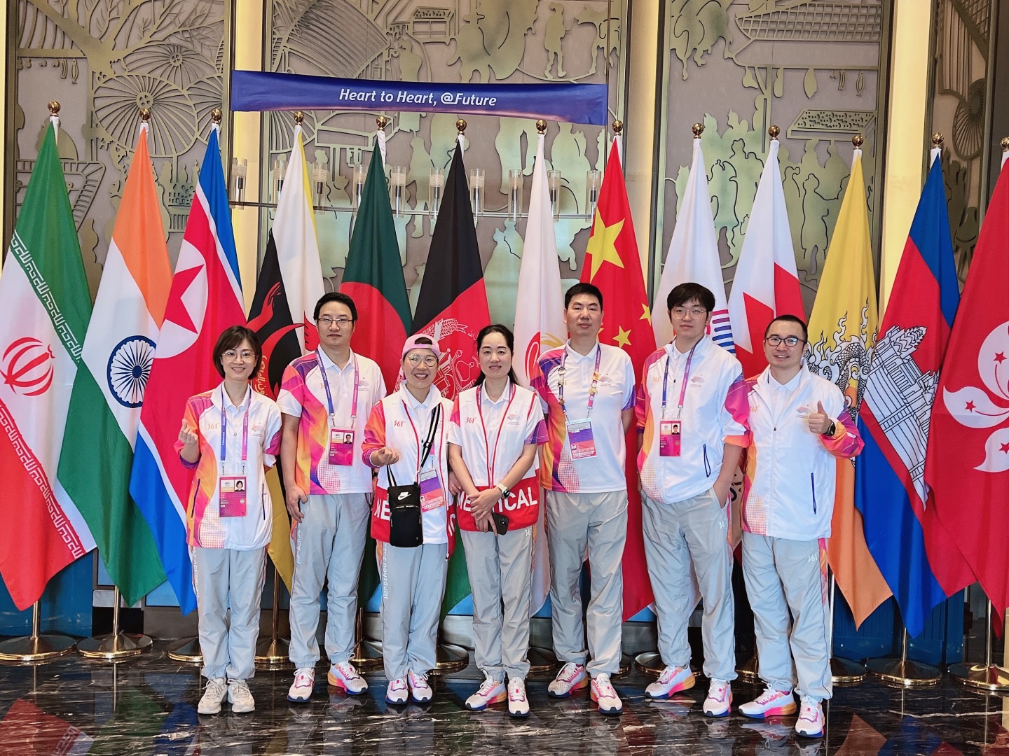 还记得9月30日晚,韩国队与朝鲜队的足球选拔赛如期举行。市民观赛热情似火,大雨都无法浇熄,医务室这里来了三名朝鲜龙舟队队员,他们提早进驻训练,有些咽喉不适。因为有了前期的接诊经验,我们已经可以熟练运用翻译机无障碍沟通了,很快就做了处理。治疗过后他们邀请我们一同观看他们国家的这场赛事,我们欣然答应。朝鲜队骁勇善战,进了好多球,我们彼此加油,一同欢呼!作为医务人员,我们应该要保持专业、中立的态度,但此时此刻,我们是朋友,无关国界。