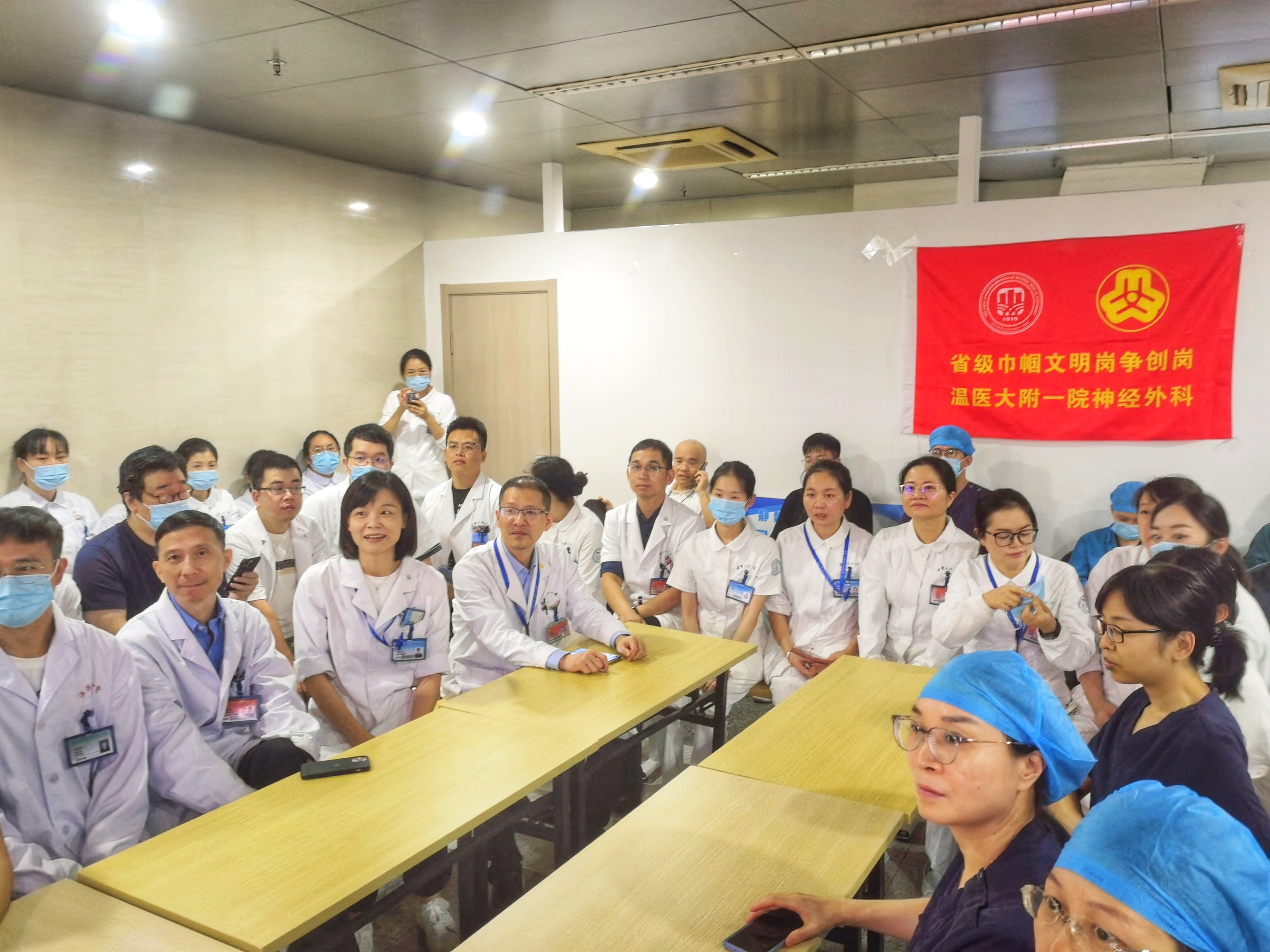 10月19日下午,神经外科第一、二党支部联合科室,在352病区西边大厅,以“凝心铸魂强根基、团结奋进新征程”为主题,开展主题党日活动。