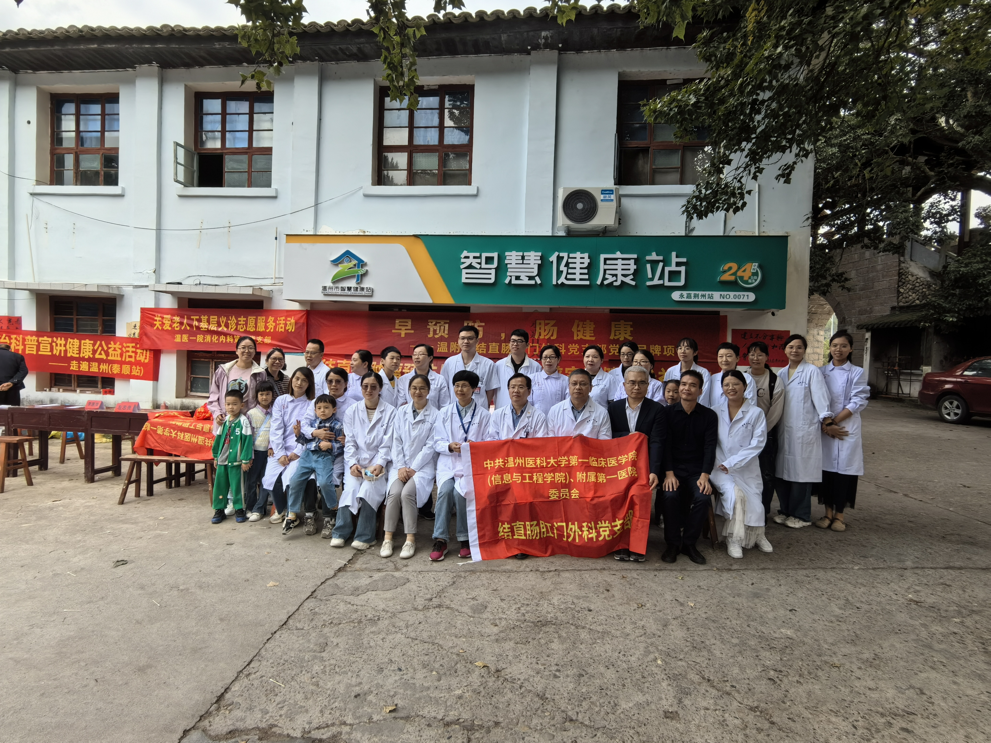 近日,结直肠肛门外科党支部与消化内科第一、二党支部一同来到永嘉县大若岩镇荆州村,开展结直肠肿瘤早诊早治科普宣讲及义诊活动。