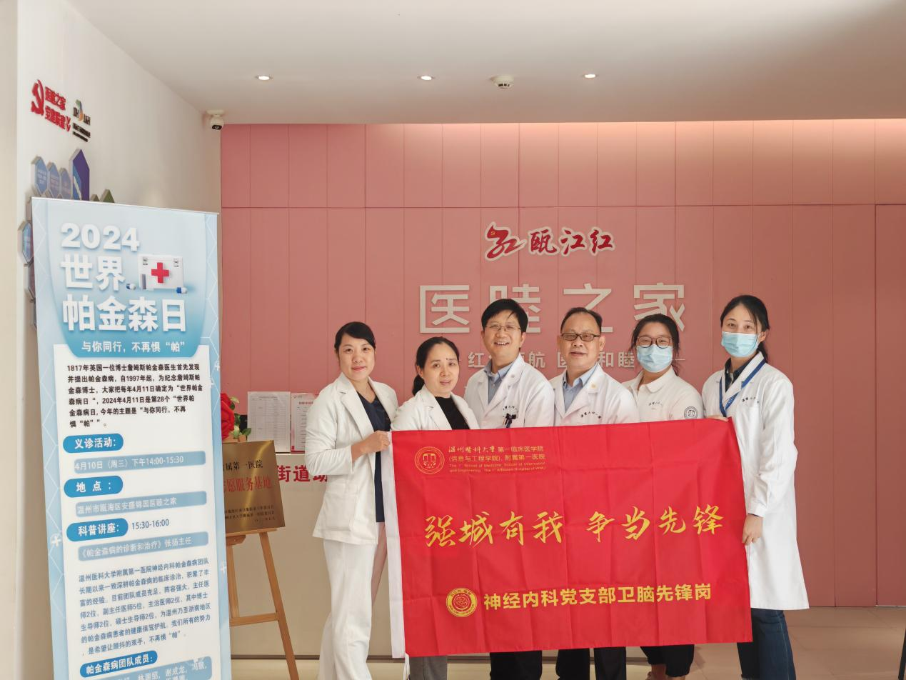 4月11日是第28个“世界帕金森病日”,为提高群众对帕金森病的认知和关注程度,做到早防早治,改善患者生活质量,减轻照护者负担,近日,神经内科党支部携手院团委与“瓯江红”南白象街道医睦之家,以“与你同行,不再惧"帕"”为主题,开展系列健康公益活动,包括社区义诊、患友交流、科普教育等。