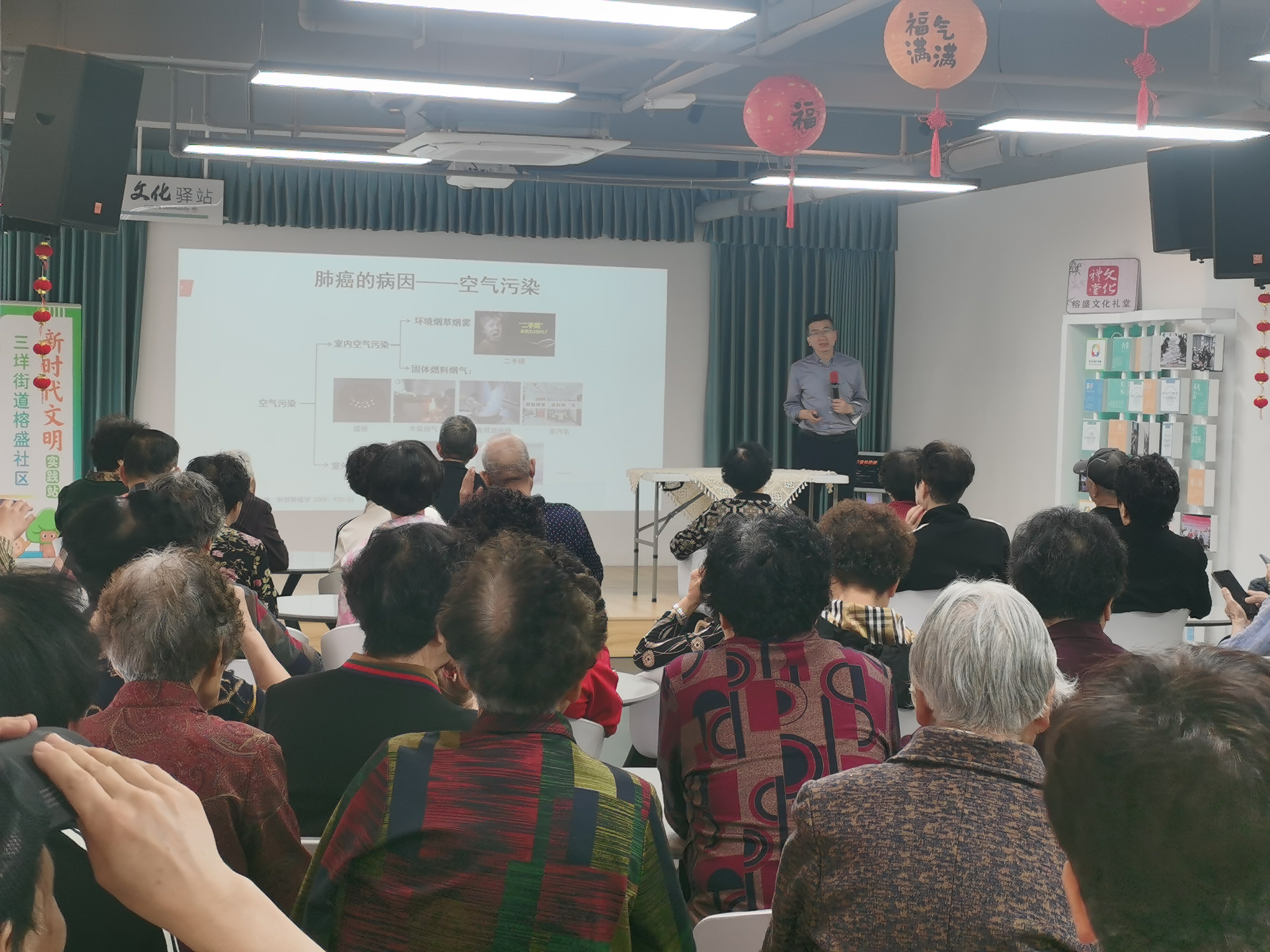 呼吸与危重症医学科党支部书记陈彦凡用地道的温州话,给社区居民普及了肺癌的发病原因、治疗方法和护理知识,用通俗易懂的方式讲解了“肺癌并不可怕”,并和居民们进行了热烈的互动和沟通。