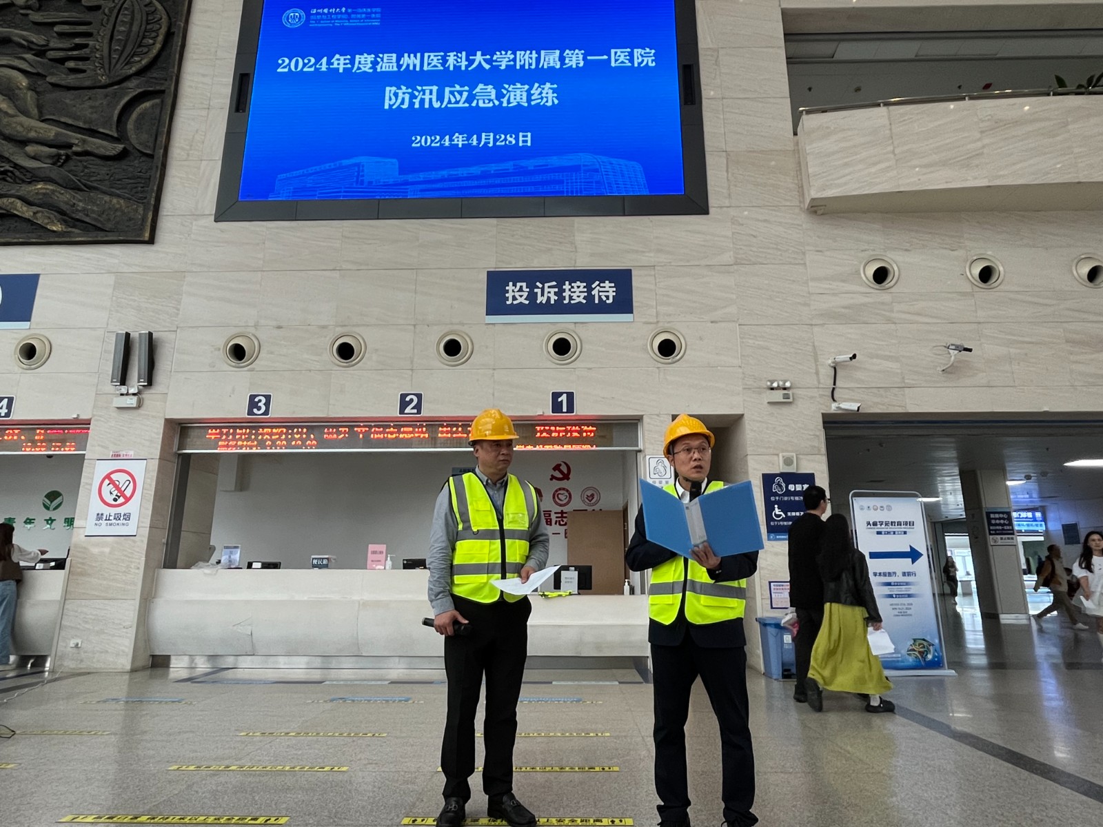 为进一步夯实防汛减灾基础,提升应急抢险救援能力,确保有效应对汛期极端天气引发的各类突发事件,最大程度地减轻暴雨灾害带来的财产损失,确保人员安全,4月28日,我院以《省卫生健康委办公室关于开展2024年防汛备汛工作大检查暨风险隐患大排查的通知》和《温州市卫生健康委员会关于做好2024年全国防灾减灾日有关工作的通知》为抓手,重点加强对院内易涝点的管理,并开展防汛应急演练。门诊部、信息处、总务处、保卫处、综合服务处、基建处参与演练,副院长陈允玉担任演练指挥,并开展演练动员。