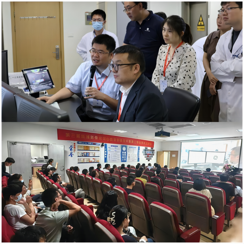 “同心协力”心血管影像技术交流活动在我院放射科举行。中国医学科学院阜外医院放射影像科技师长韩磊与曹国全共同操作演示,并与现场影像技术人员进行深入探讨交流。“心领神会”心血管影像专题会环节邀请了国内知名专家开展讲座,内容精彩纷呈。在“心有灵犀”心血管影像与临床讨论环节,临床与影像专家面对面,就当前热点问题各抒己见。