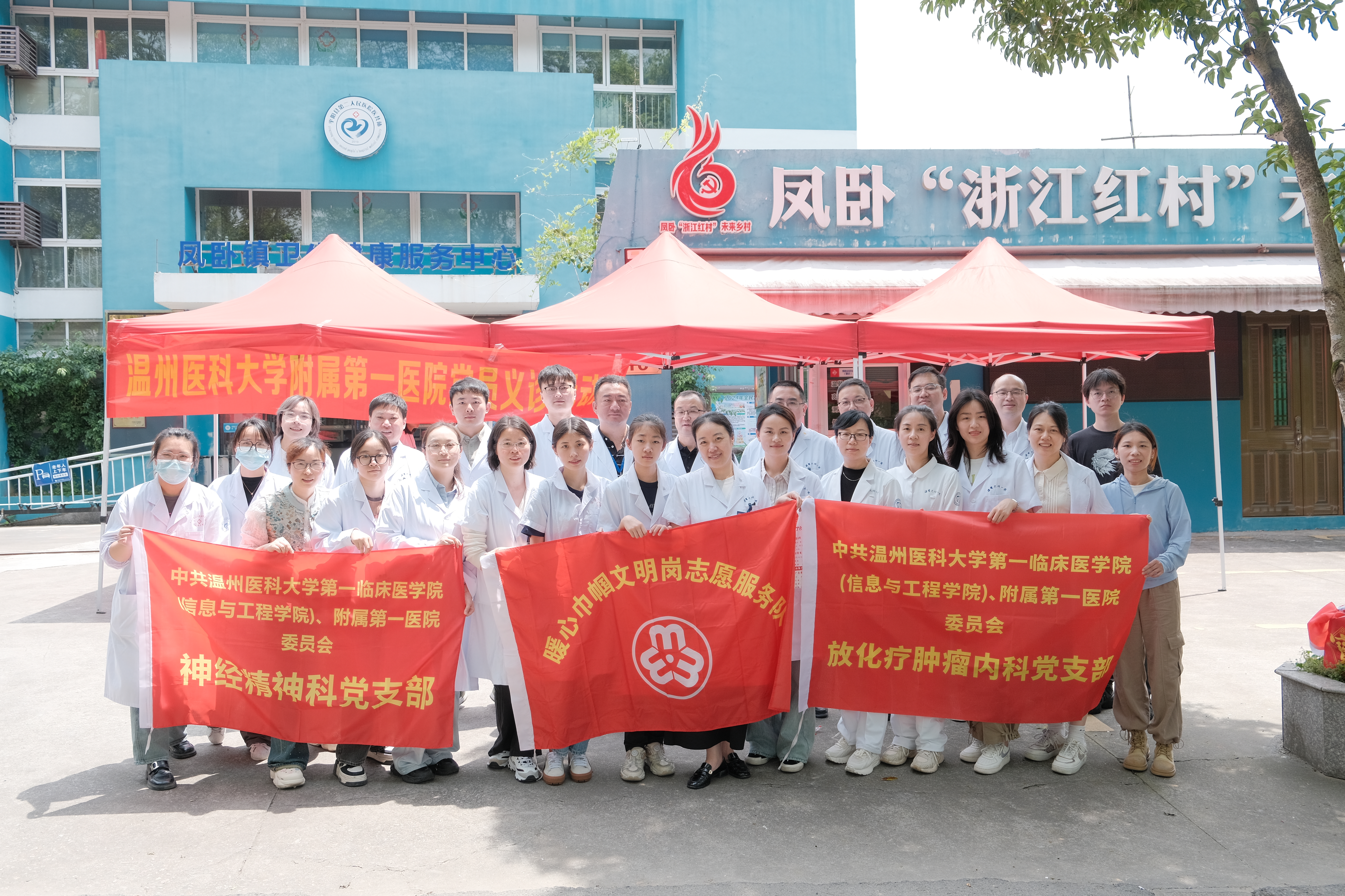 5月19日,为发扬爱国主义精神,放化疗肿瘤内科党支部联合神经精神科党支部,共赴平阳县凤卧镇,开展 “追忆革命岁月,传承红色文化”主题活动。活动内容包括开展义诊活动、参观中共浙江省“一大”会址及纪念园。