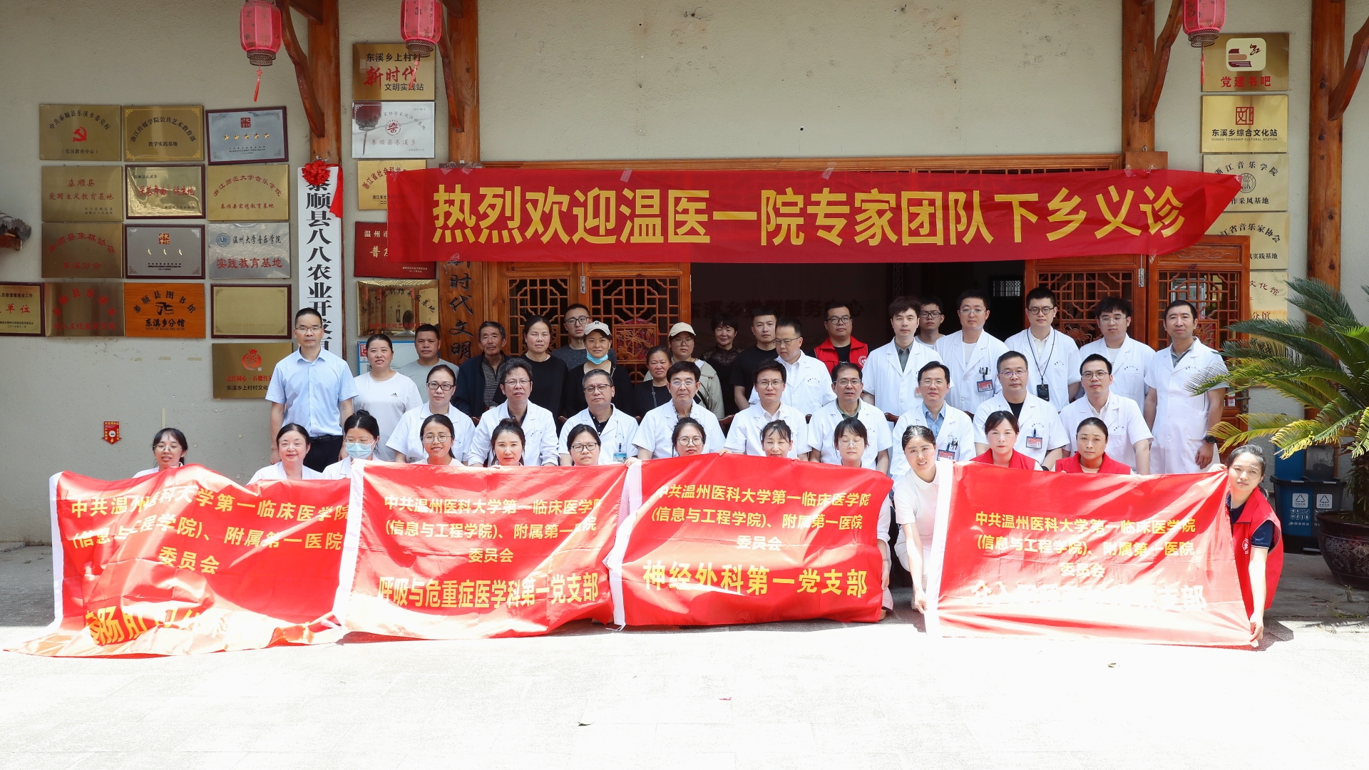5月26日,介入甲状腺外科党支部与结直肠肛门外科党支部牵头组织多支部,赴泰顺县东溪乡上村,开展联合义诊活动。在介入甲状腺外科党支部书记胡文豪和结直肠肛门外科党支部书记左志贵的精心组织下,本次义诊活动得到了东溪乡乡长、村委以及当地社区学校工作人员的全力配合与支持。共有150余位当地群众参与义诊活动。