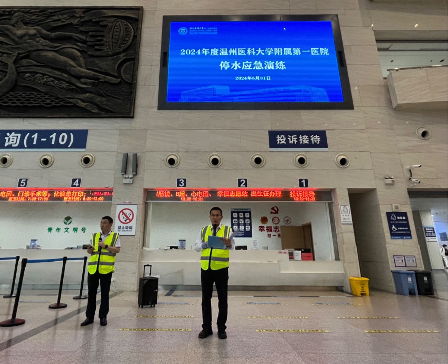 为深入贯彻落实习近平总书记关于安全生产的重要指示精神,切实提高医院预防和处置突发事件的能力,近日,根据《关于进一步做好近期医疗应急和卫生系统安全生产工作的提示》有关文件,我院组织开展停水应急演练。本次演练由副院长陈允玉带队,党政综合办公室、医务部、护理部、后勤保障部、保卫部、国有资产管理部和温州消防队特勤大队共同参与。