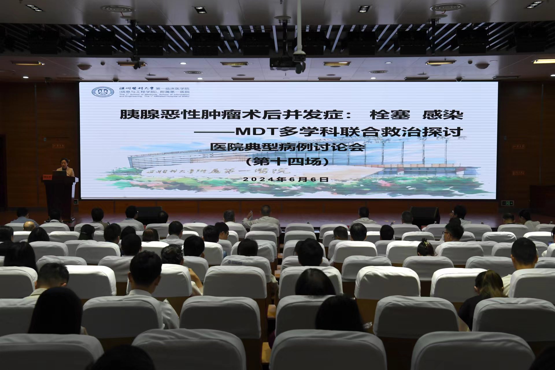 为进一步推动医院高质量发展,全面提升诊疗服务水平和疑难疾病诊治能力,促进多学科深度协作交流,6月6日早上,医院感染管理部组织开展第十四场医院典型病例讨论会。本期主题是“胰腺恶性肿瘤术后并发症:栓塞、感染——MDT 多学科联合救治探讨”。院长张纯武,副院长陈钢,相关职能处室负责人,相关临床科室医生、规培生、进修生等260余人参加会议。会议邀请了重症医学科(ICU)主任卢颖如、呼吸与危重症医学科主任李玉苹、感染内科主任卢明芹、肝胆胰外科主任余正平、胃肠外科主任陈笑雷、血管外科副主任(主持)黄景勇、营养科副主任(主持)谷斌斌等担任点评专家。