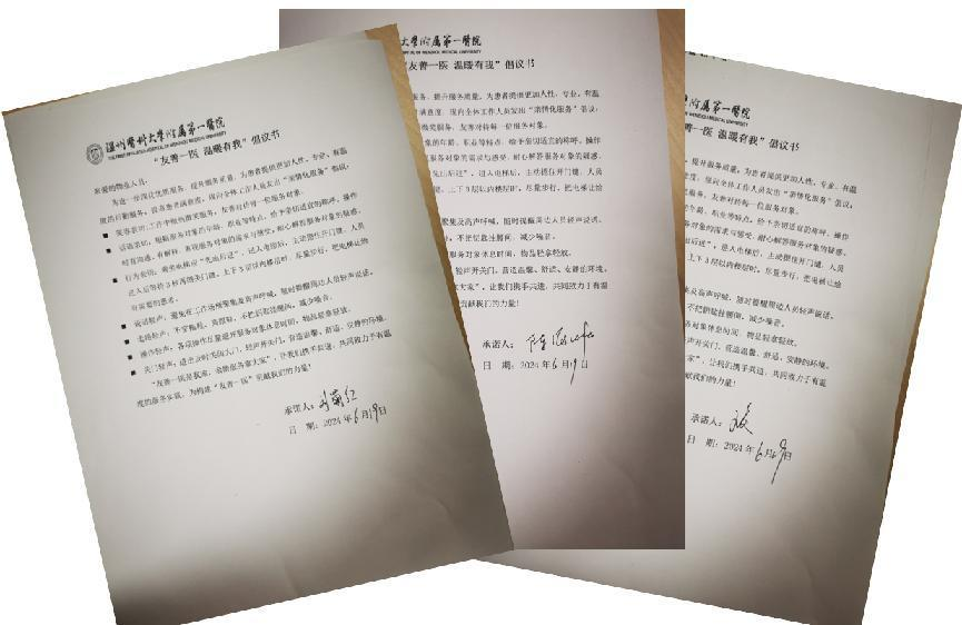 近日,后勤保障部发起“友善一医 温暖有我”倡议书签署活动,物业服务公司代表们共同签署了倡议书,内容包括笑容亲切、话语亲切、行为亲切、说话轻声、走路轻声、操作轻声和关门轻声,为构建“友善一医”贡献力量。