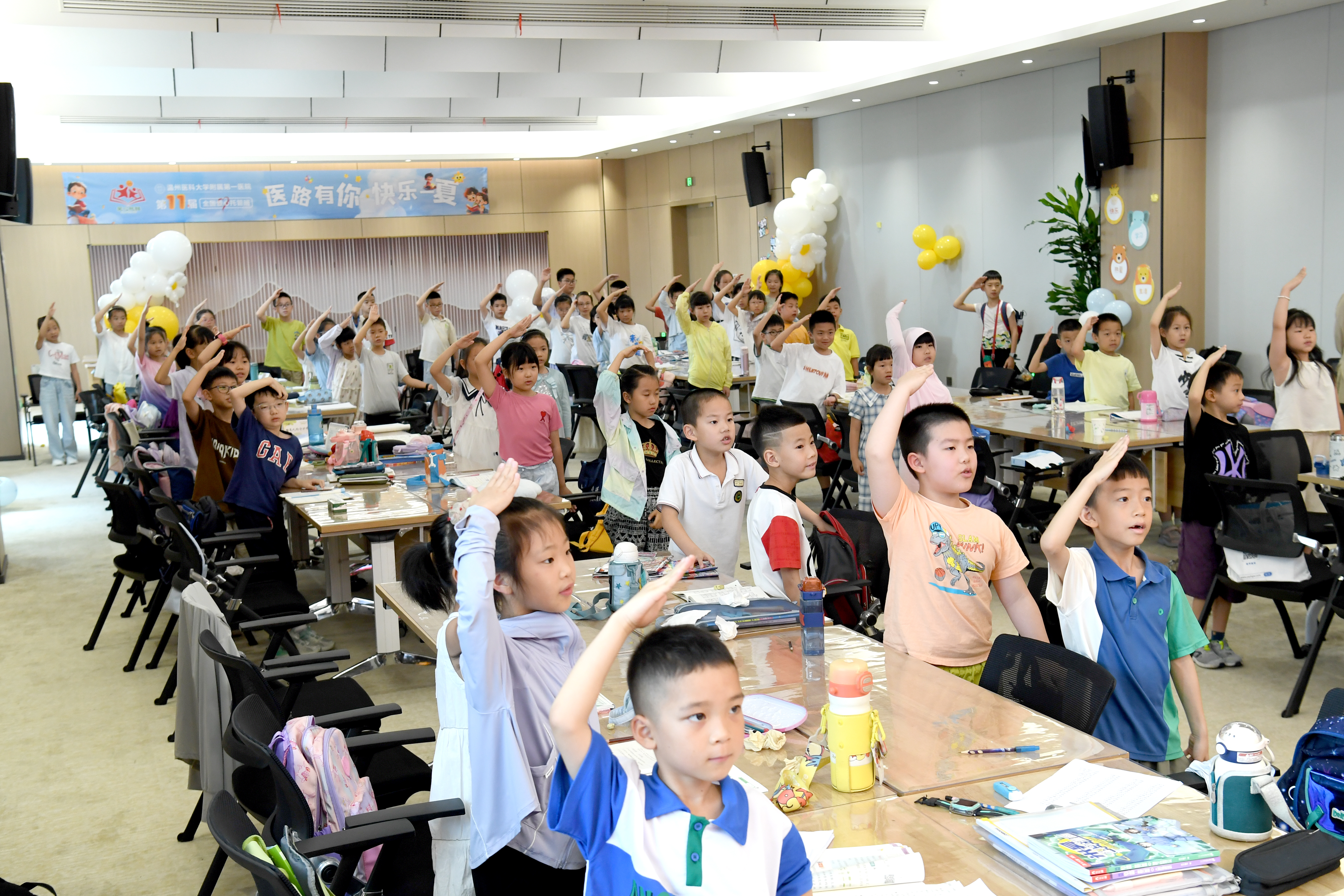 随着暑期的到来,为让职工家长安心投入工作,7月8日上午,我院第十一届职工子女暑期爱心托管班在基因药谷与城南小学开班。两个院区共140名职工子女与24位老师通过视频连线的方式,共同参与开班仪式。这些老师中,有部分是来自于医院的“医二代”,他们都曾参加过暑托班,正在周边大学就读。