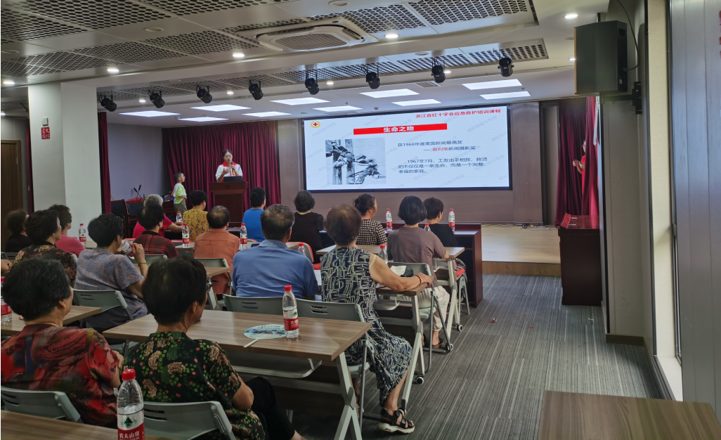 随后,神经外科352病区护士周慧婷为居民们带来了一场关于心肺复苏术(CPR)与自动体外除颤器(AED)使用知识的普及讲座。在场的居民和暑期社会实践队员们认真听讲,积极尝试操作,学习氛围浓厚。