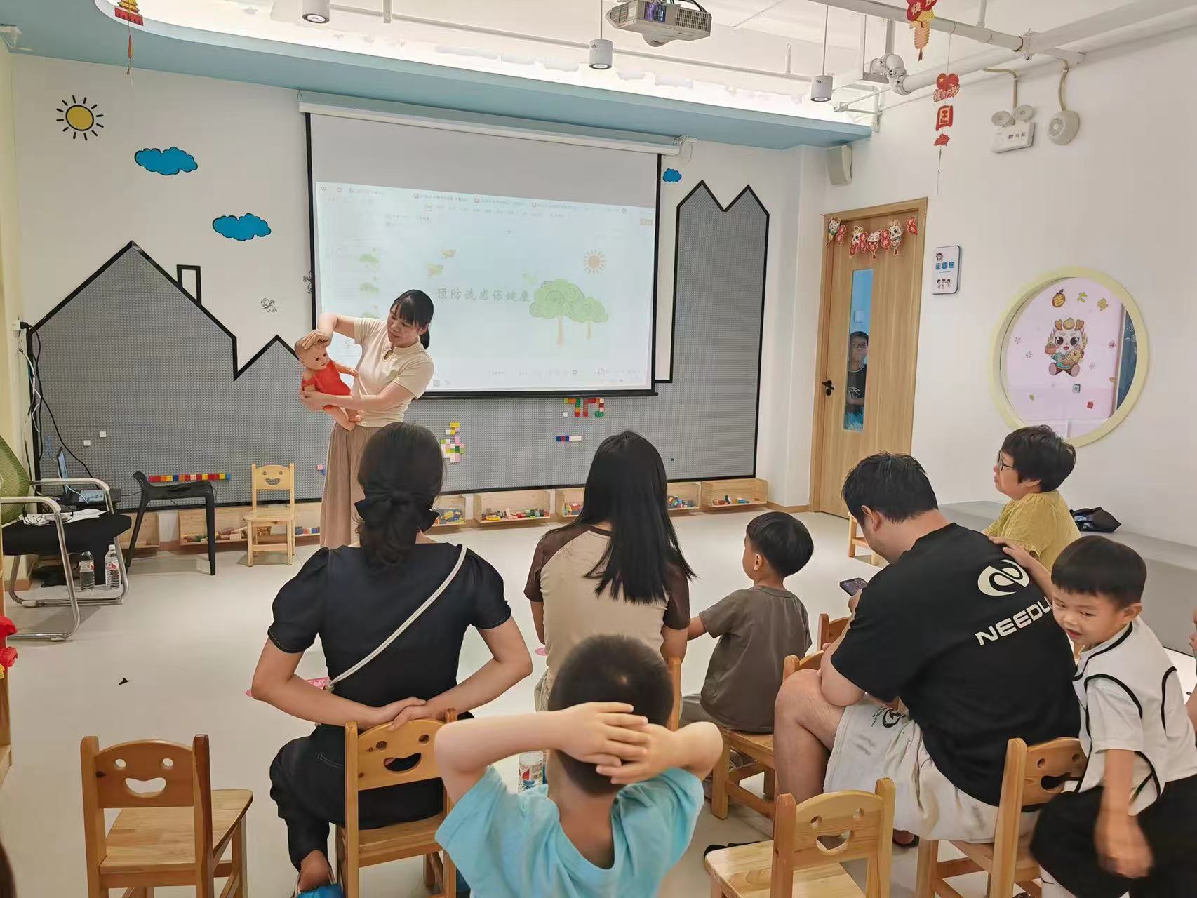 医护人员还对园区教师进行小儿急救知识培训,通过现场演示和互动演练等方式,提高了教师们识别及处理常见疾病的的意识和能力。