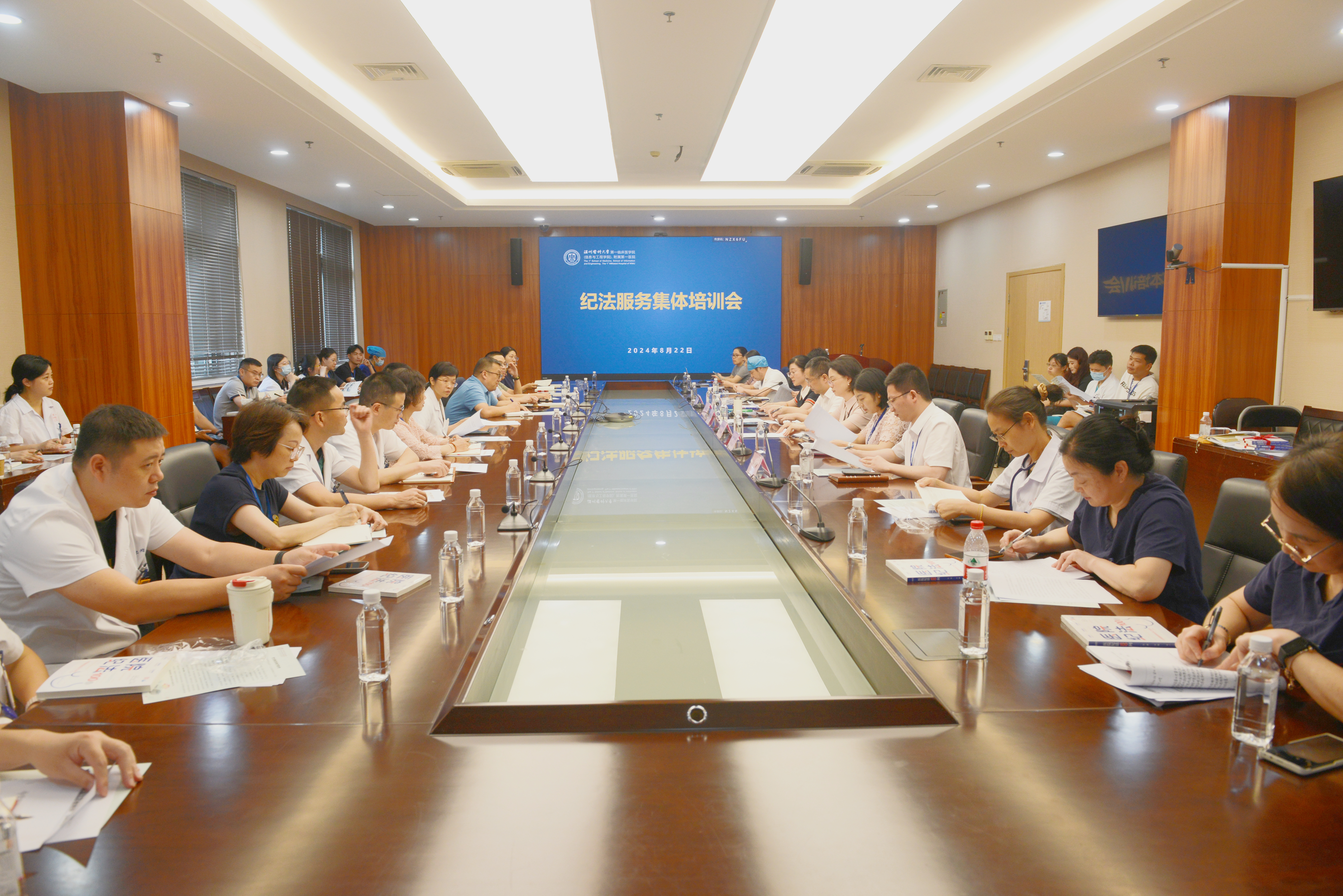 “规范办会、用车有哪些注意事项?出国(境)途中行程临时变化怎么办?廉洁从业要杜绝哪些现象?多点执业、院外兼职要按照什么规定执行?哪些行为属于科研失信行为……”为扎实推进党纪学习教育,进一步发挥纪检委员在党支部和科室工作中的重要作用,推动全面从严治党向基层延伸,8月22日下午,院纪委召开纪检委员纪法服务集体培训会。院纪委书记黄建永出席会议并讲话,相关职能处室负责人、各党支部纪检委员等70余人参加会议。