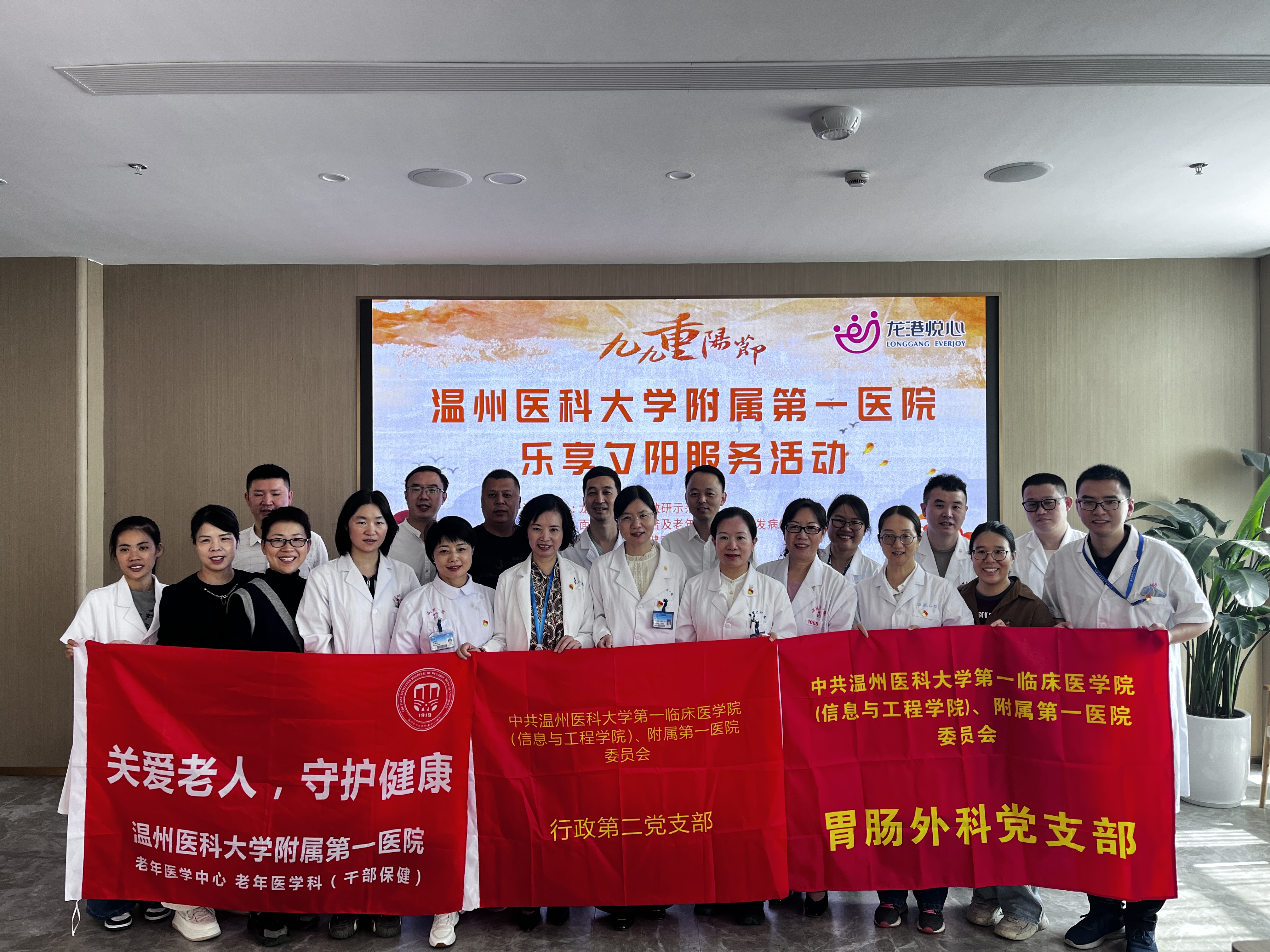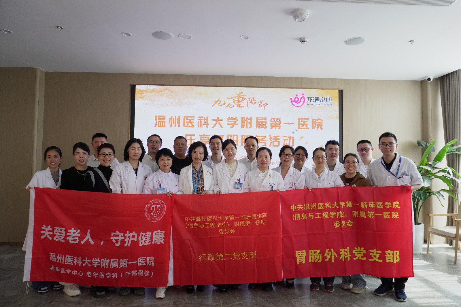 为弘扬中华民族敬老、爱老的传统美德,普及老年常见病、多发病的防治知识,提高老年人的健康素养,10月11日重阳节当天,在行政第二党支部书记金小亚的带领下,行政第二党支部联合老年医学科党支部、院团委青年医师志愿团队,共同走进龙港市医养康教研示范园,开展“乐享夕阳”服务活动,为园区内的老年人开展健康义诊,并送上节日祝福。本次活动是龙港市正式挂牌成立五周年之际,我院携手龙港市委共同启动医疗惠民党建共建暨“医心为民”十大活动的首个项目,是一次集医疗、科普和志愿服务于一体的党团共建活动。