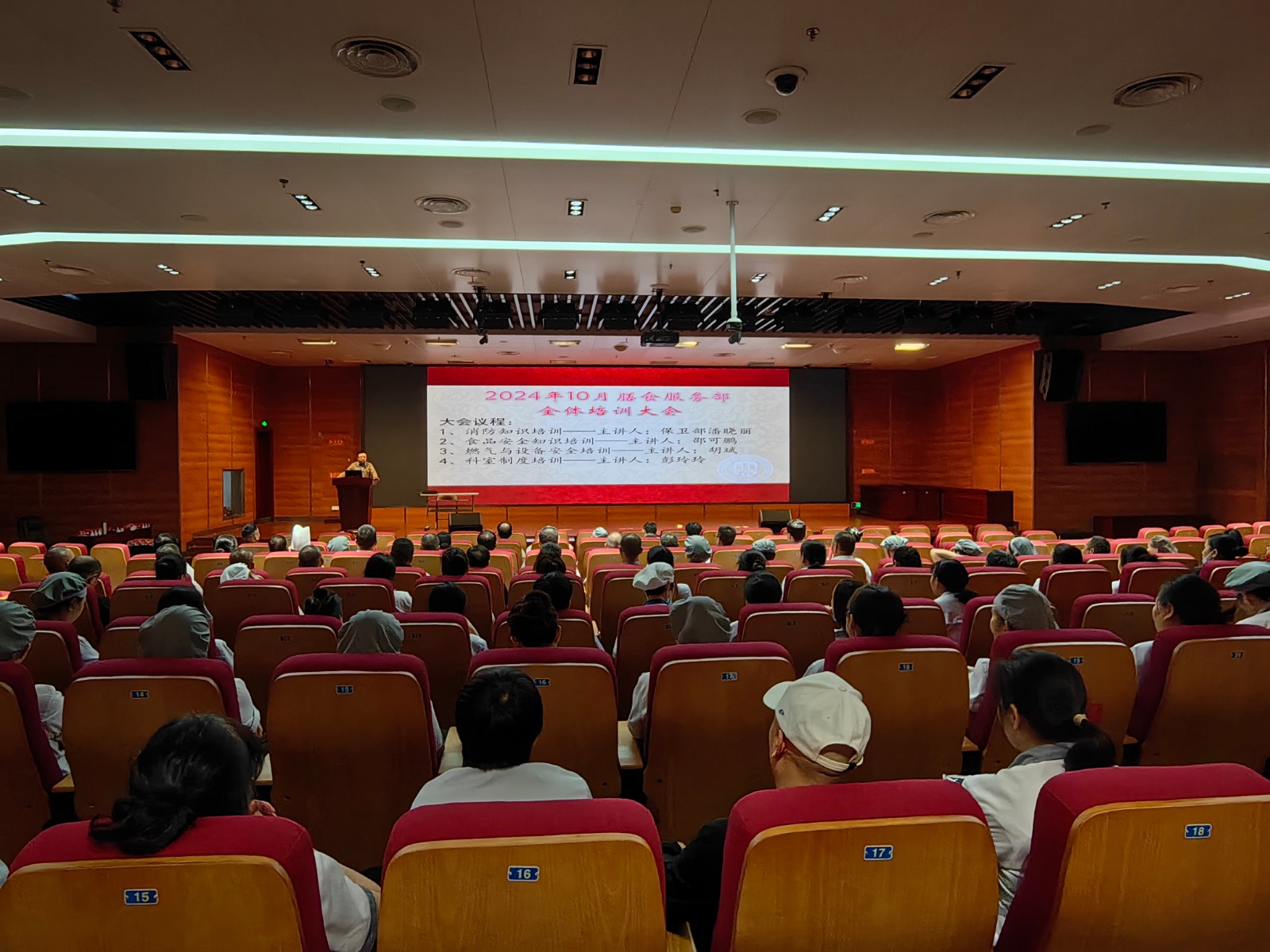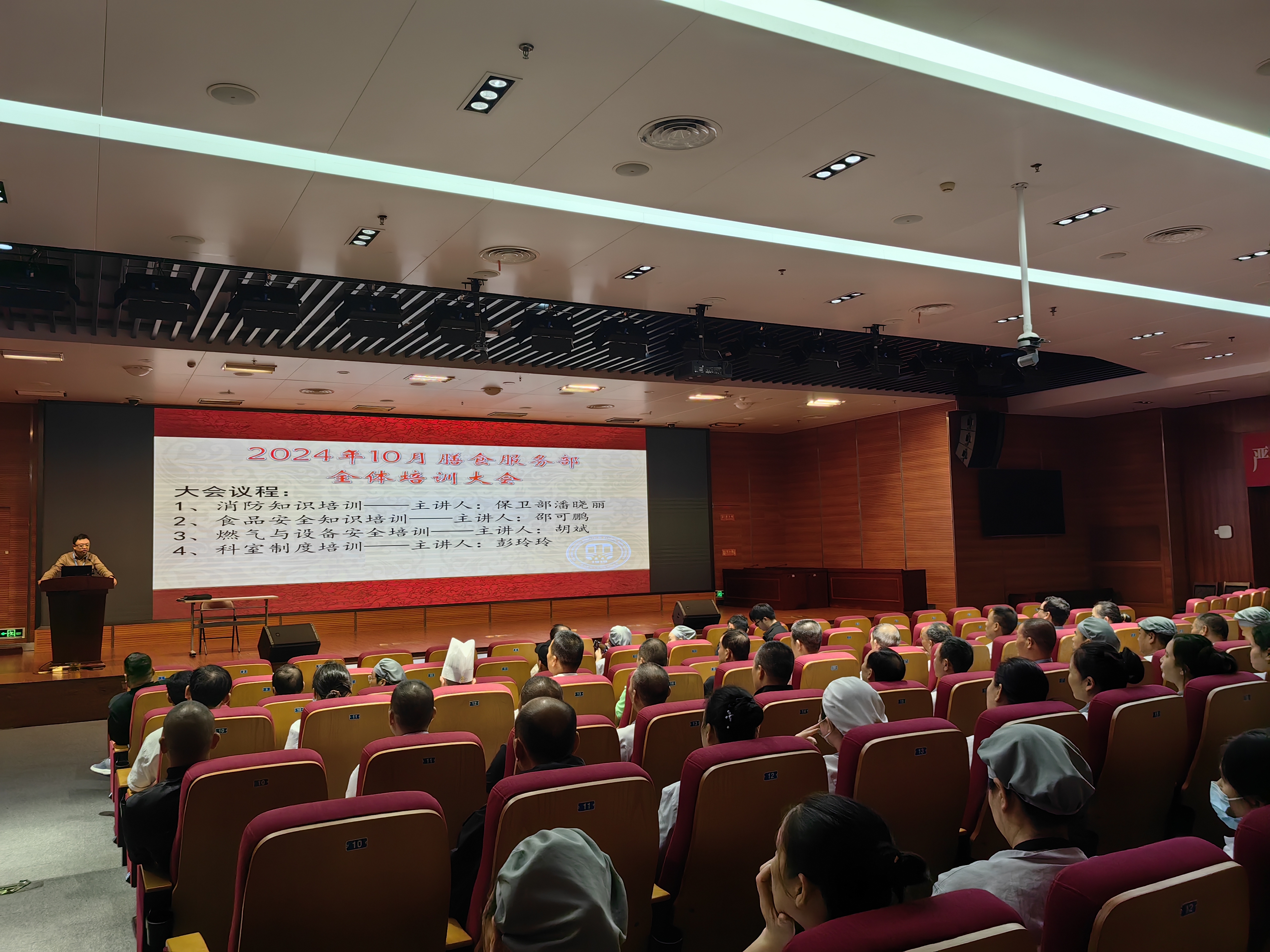 为进一步强化膳食服务部职工的消防安全、食品安全和生产安全等意识,近日,膳食服务部以“安全”为主题,开展2024下半年职工培训大会。